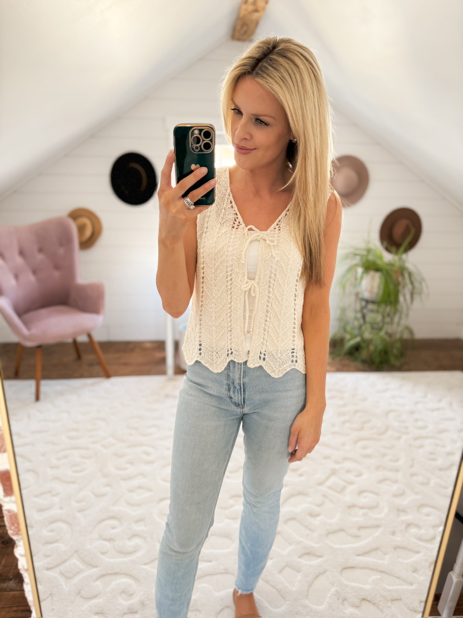 Another top perfect for summer! Pair it over a bodysuit or bralette! True fit. Really gorgeous for a good price point.