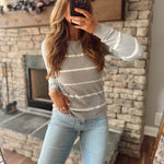 Classic stripes with a subtle shimmer ✨ this Sweater takes your everyday look up a notch with delicate clear sequins woven into the stripes for just the right touch of sparkle. Lightweight, soft, and easy to layer, it’s a perfect throw-on piece for everything from coffee runs to cozy nights out.