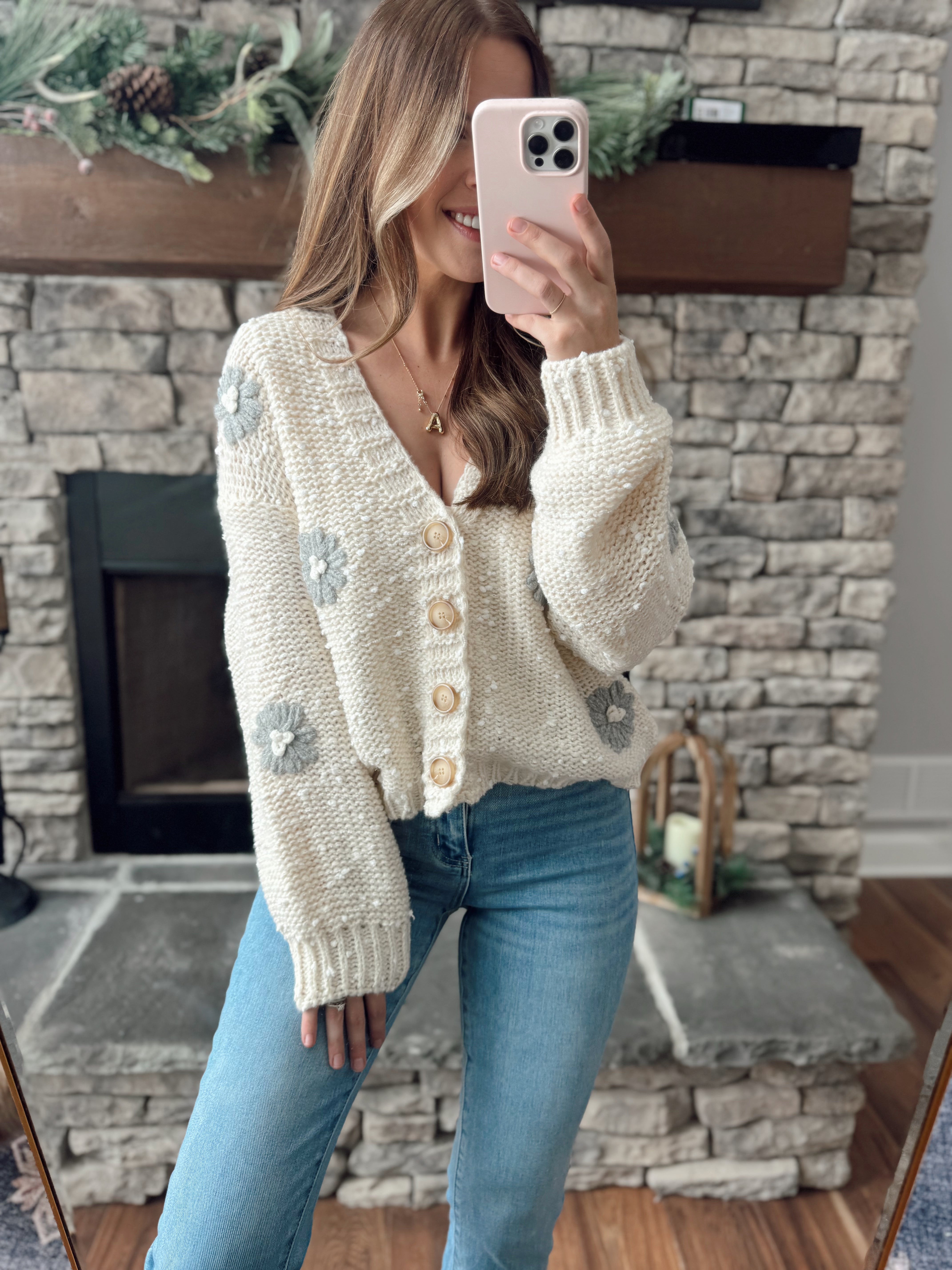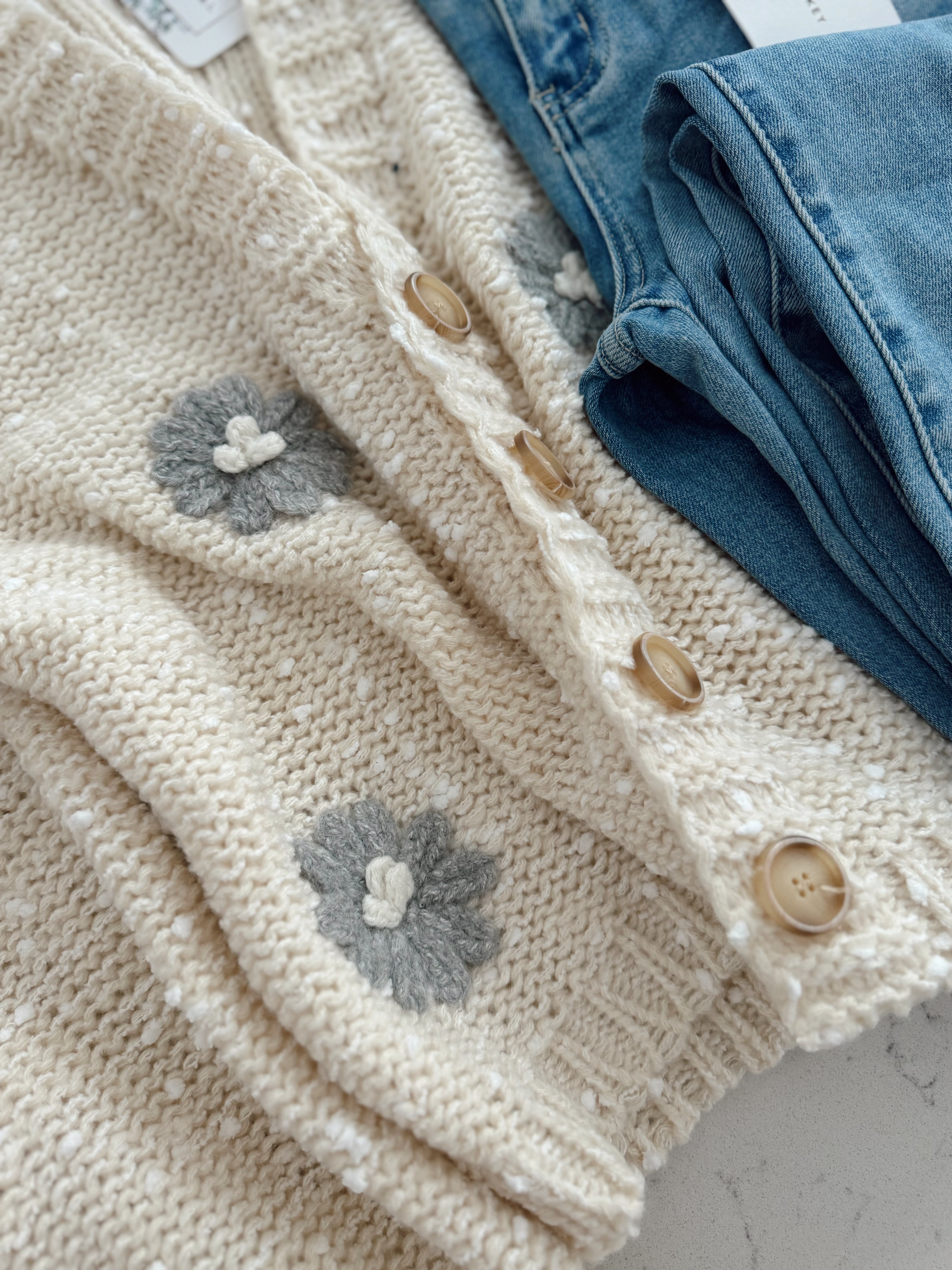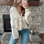 Frosted Petals Cream 3D Flower Patch Knit Button Down Cardi