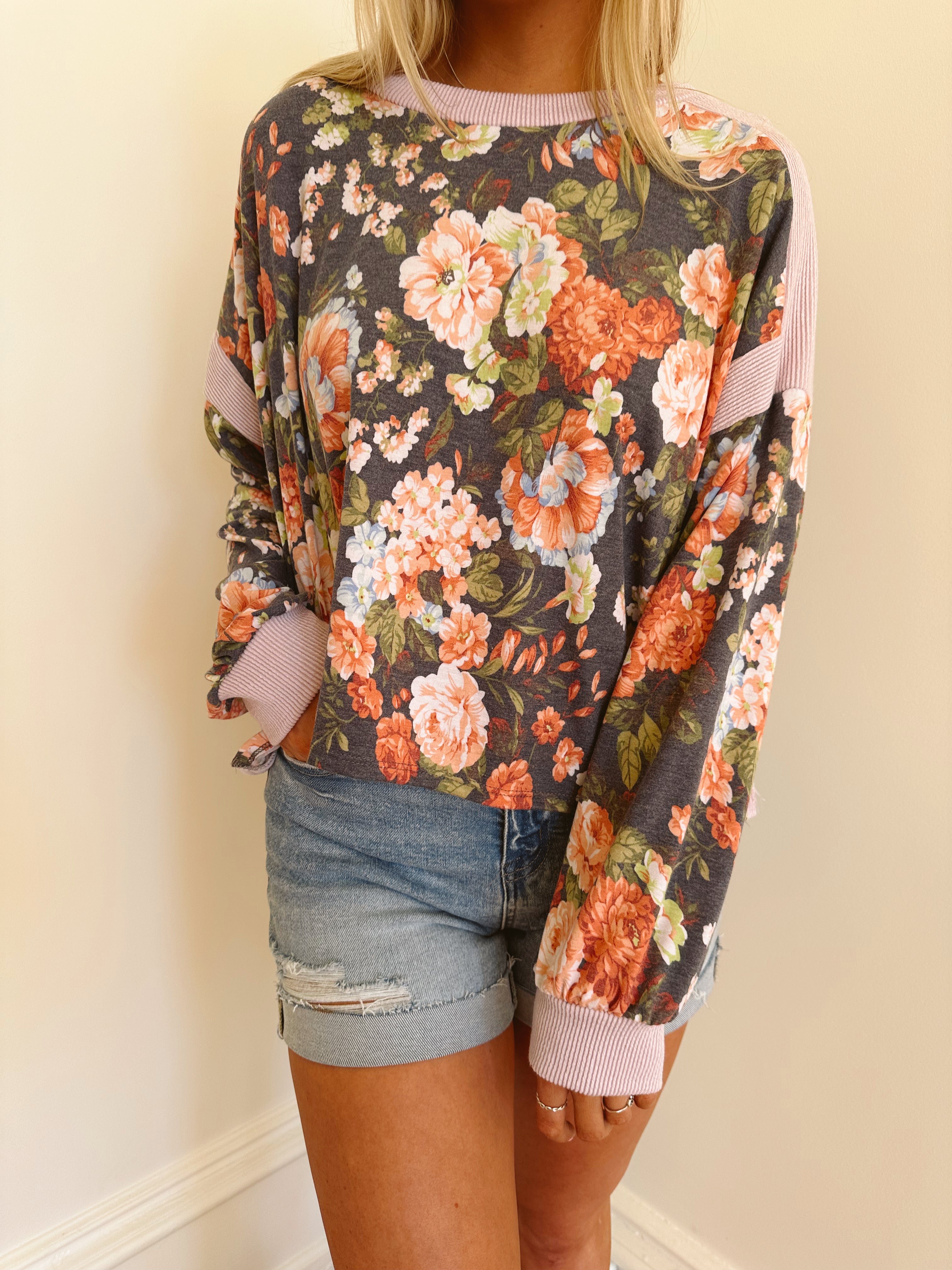 Garden Girlie Navy Floral Open Back Top