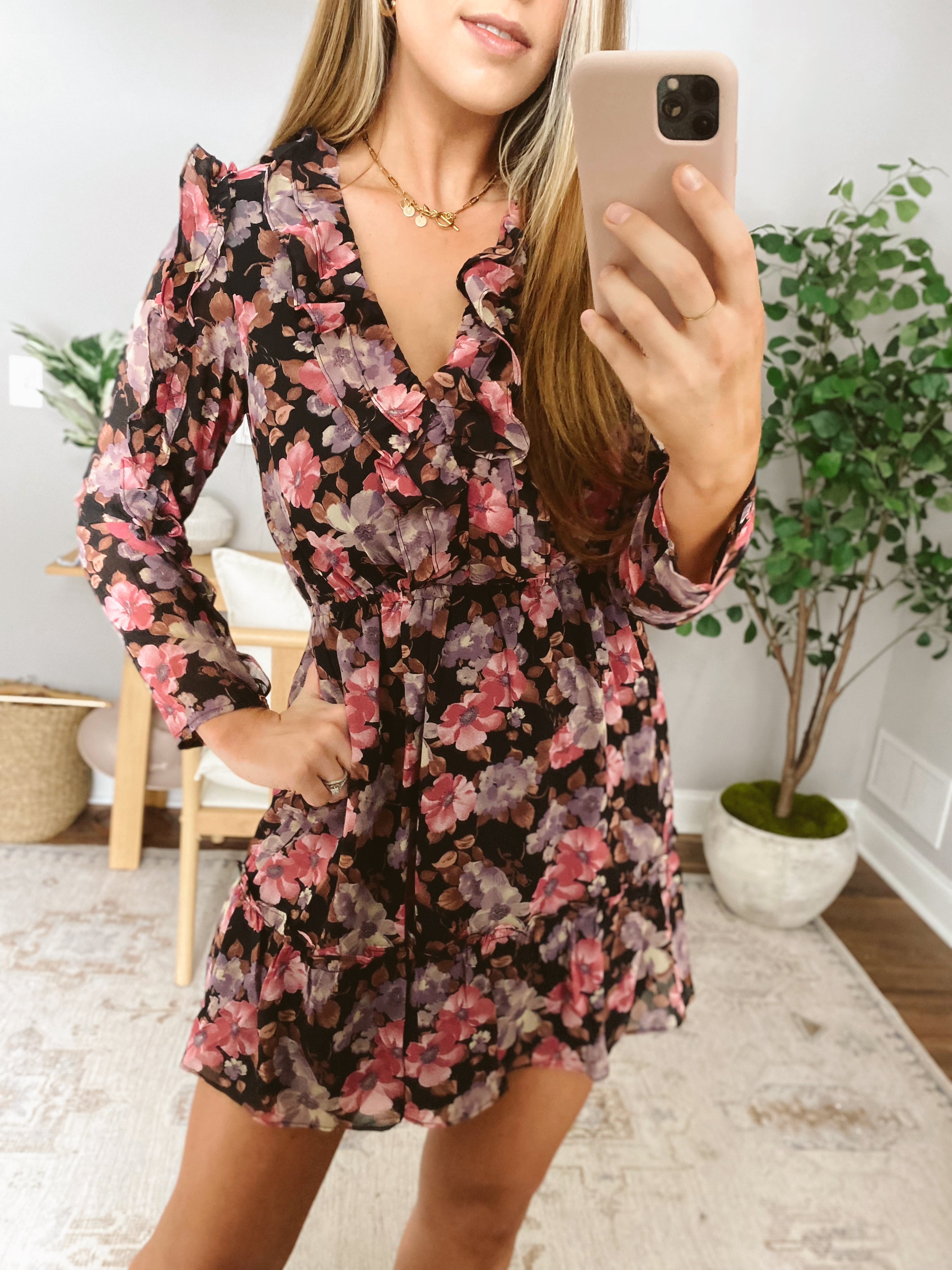 Such a cute mini! I totally thought it was black and not navy! Haha true to size fit. Love the ruffle detail.