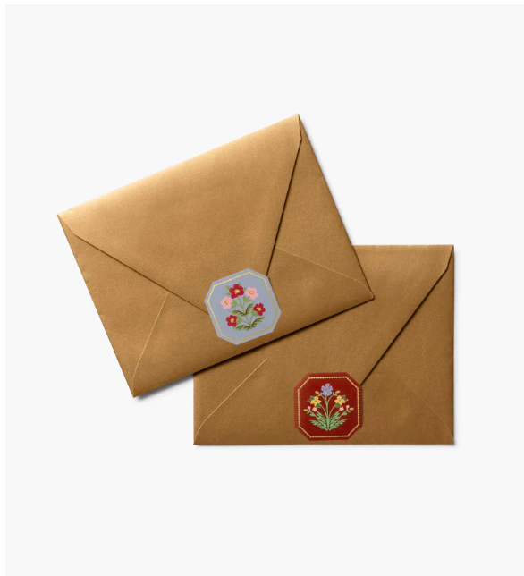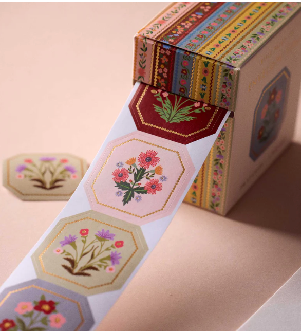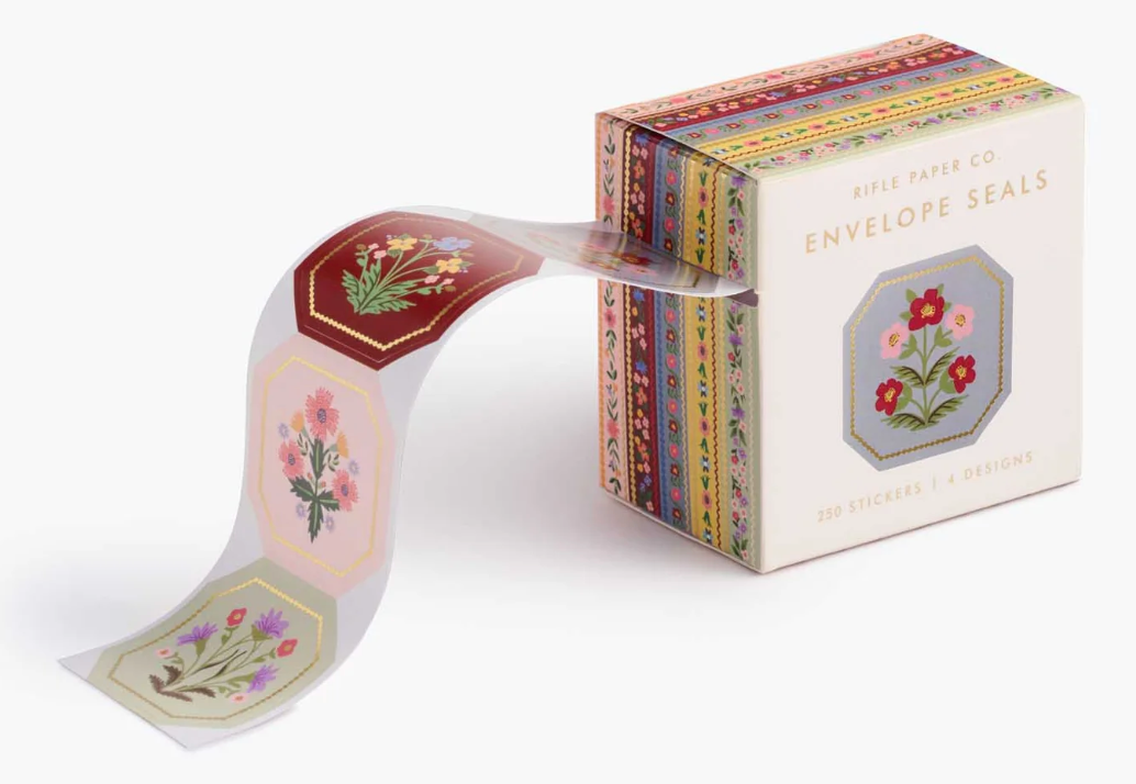 Add a special touch to your letters with these illustrated envelope seals, featuring Gemma florals in four complementary colorways. Each roll of 250 seals is packaged in an easy-to-use box with a dispensing slot.