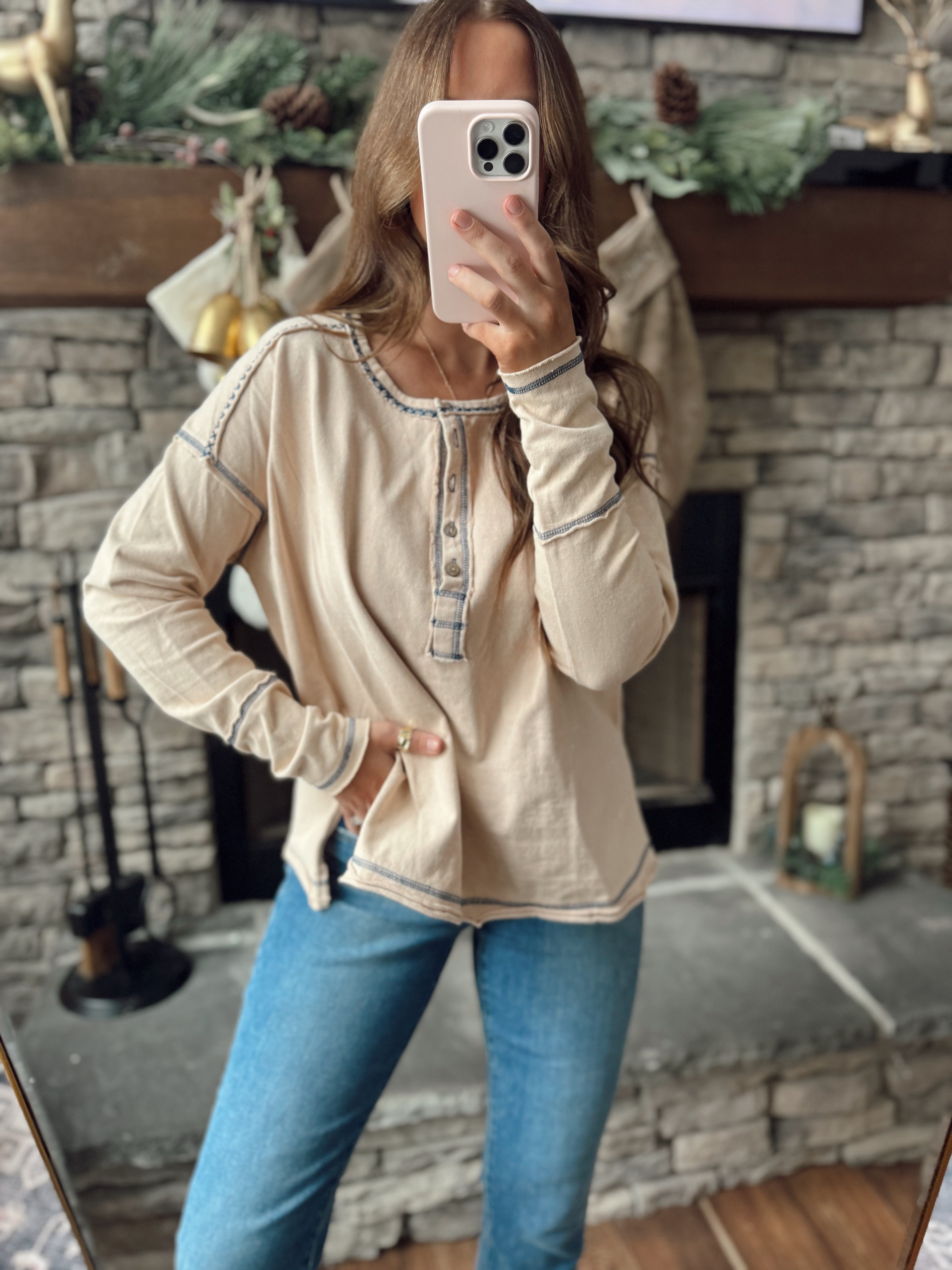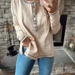 Going For It Oatmeal Cotton Mineral-Washed Henley