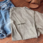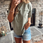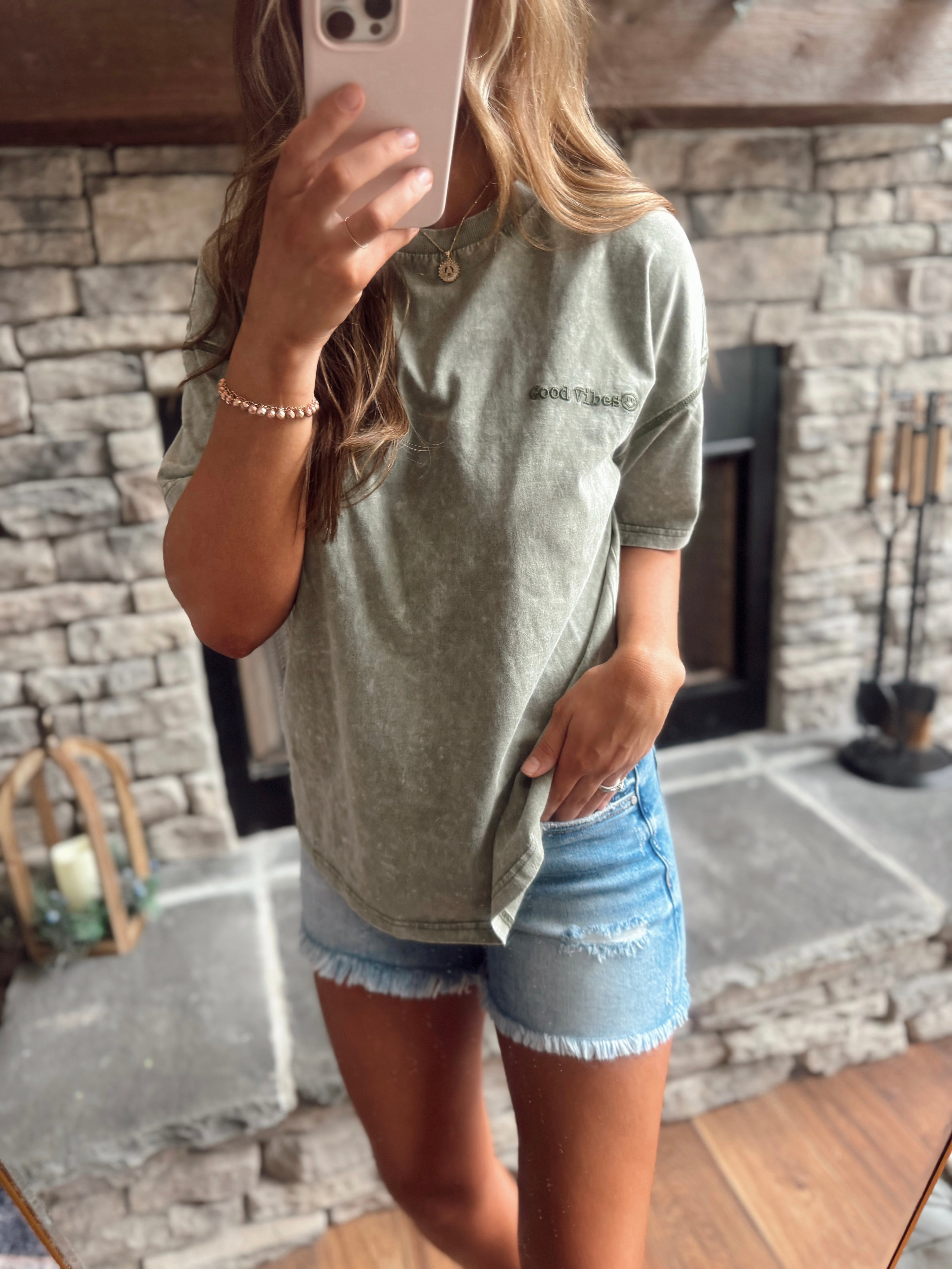 Good Vibes Olive Mineral-Washed Embroidered Tee