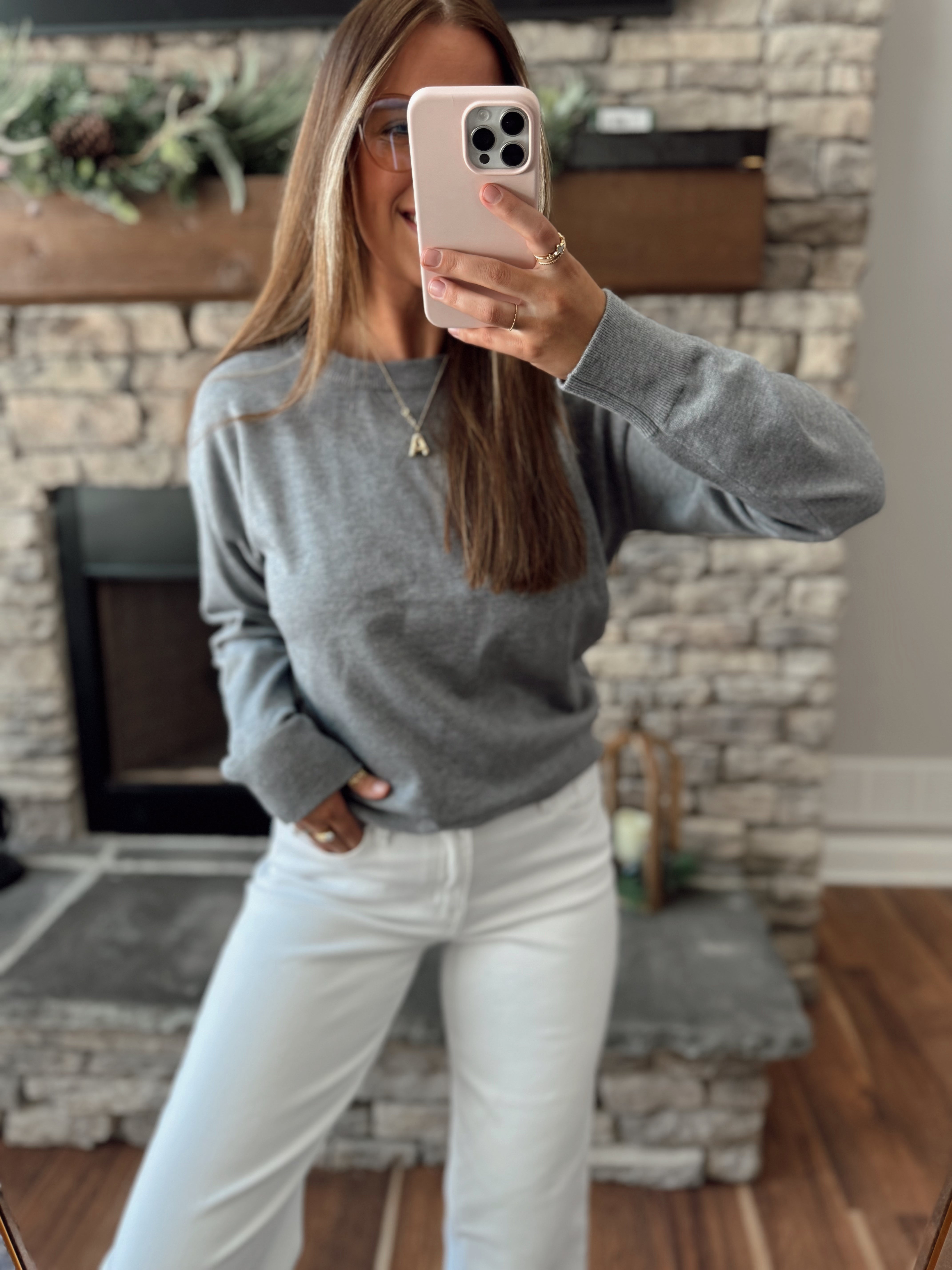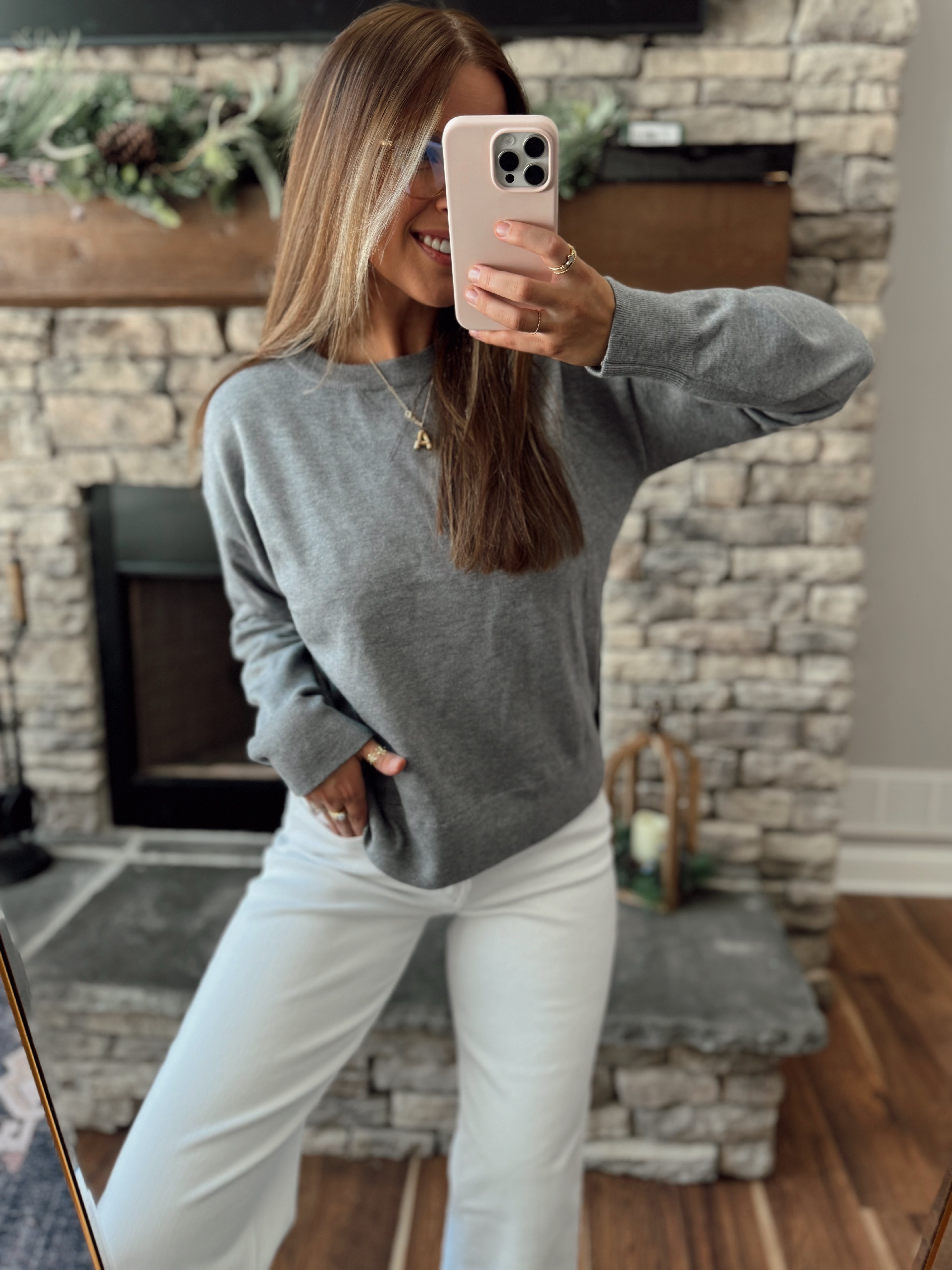 Gray Staple Round Neck Sweater