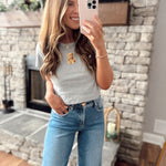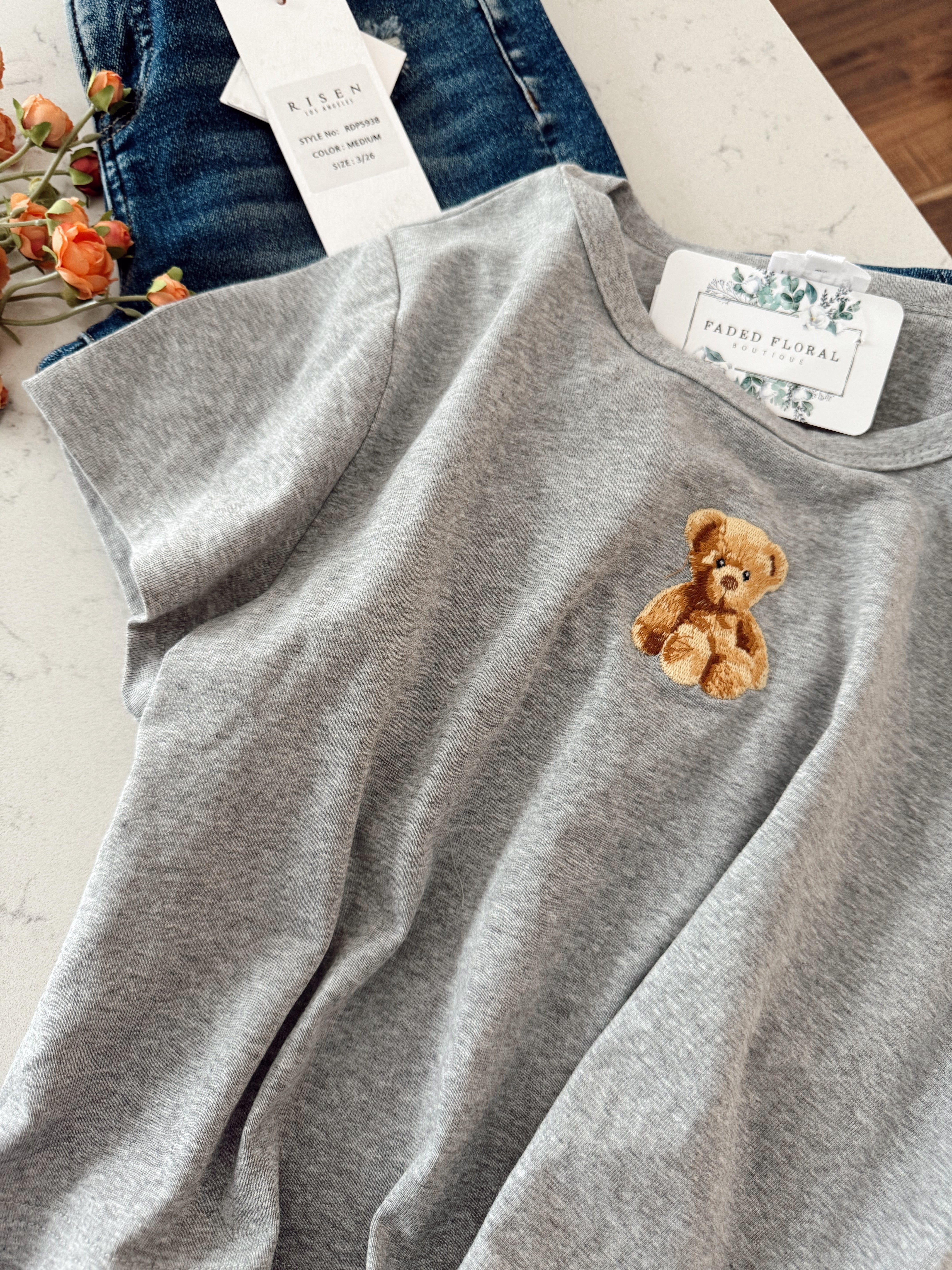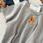 Gray Teddy Bear Embroidered Round Neck Baby Tee