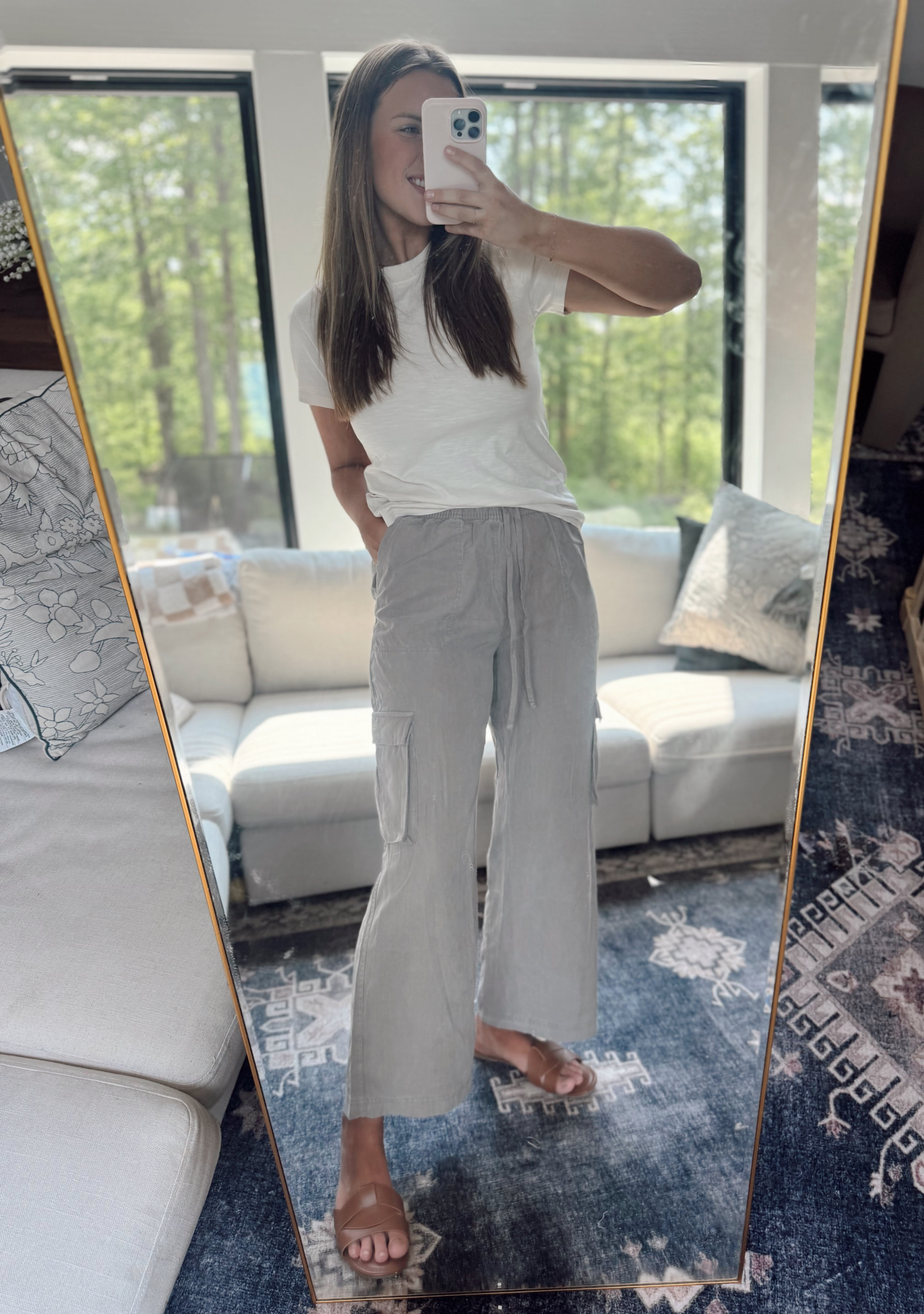 These are so comfortable! Lightweight! Very soft. Elastic waist. Plenty of pockets! These are a great summer on the run pants. Relaxed fit!