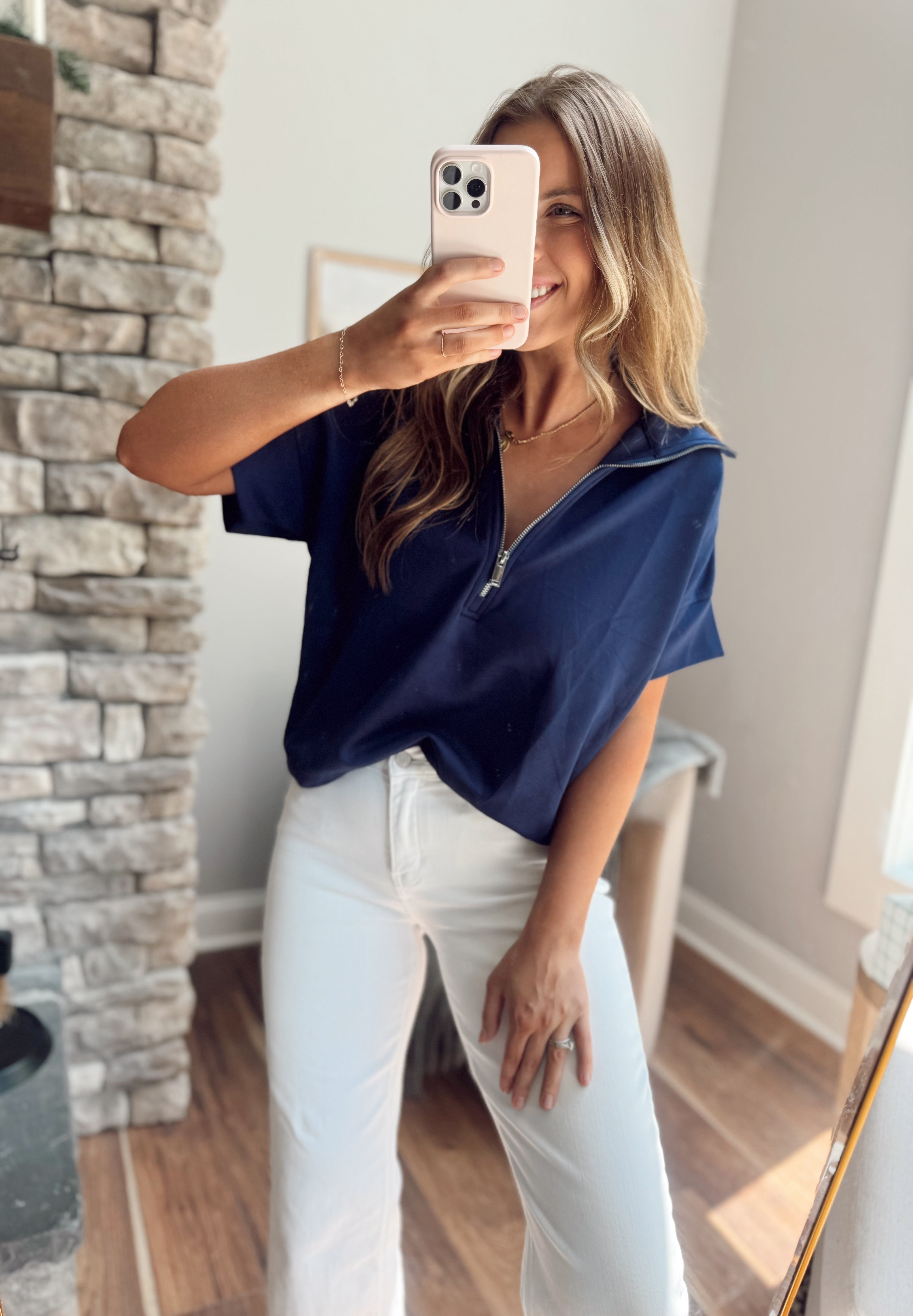 This one is perfection! Oversized fit - can size down. So soft (scuba like material!!)