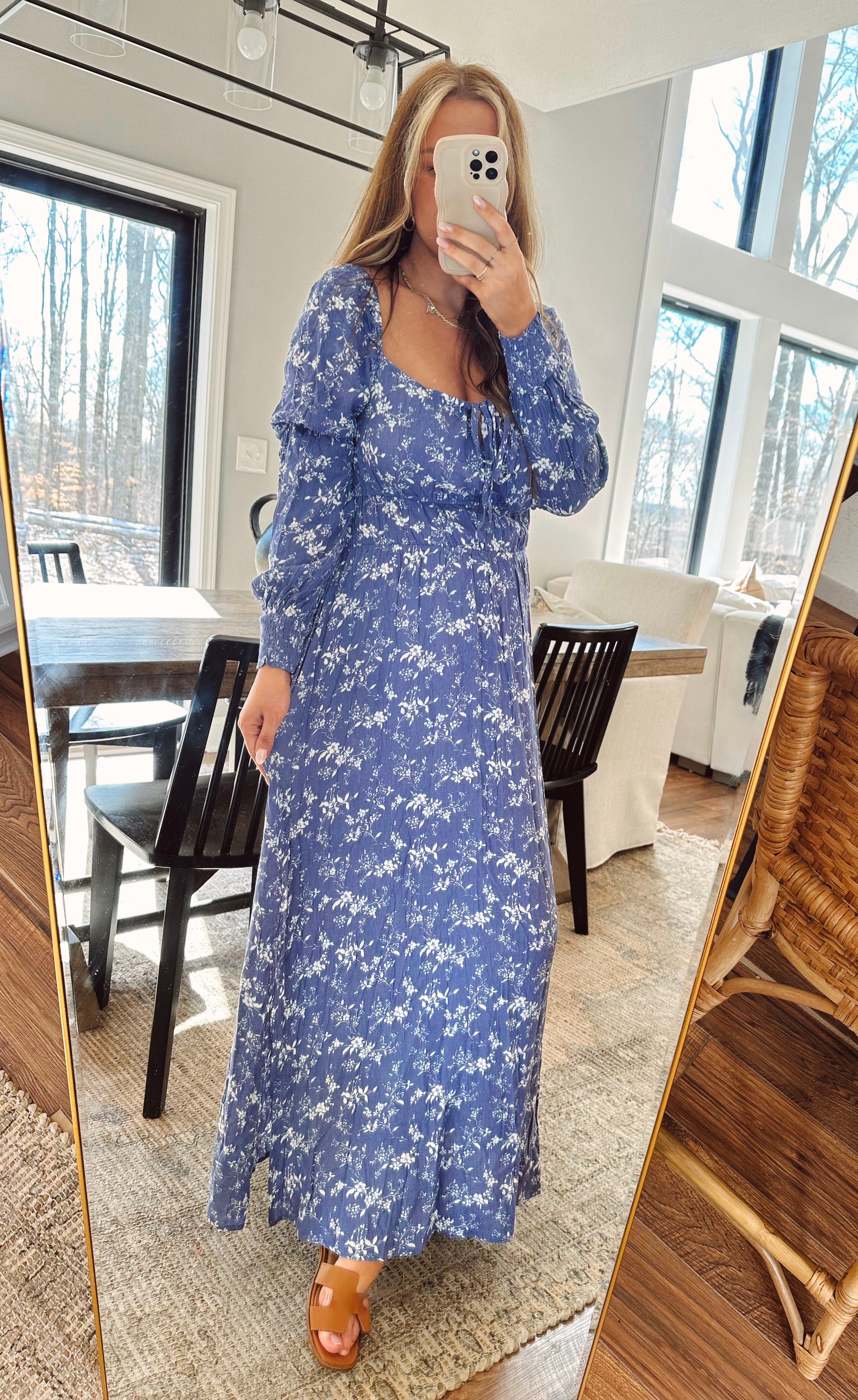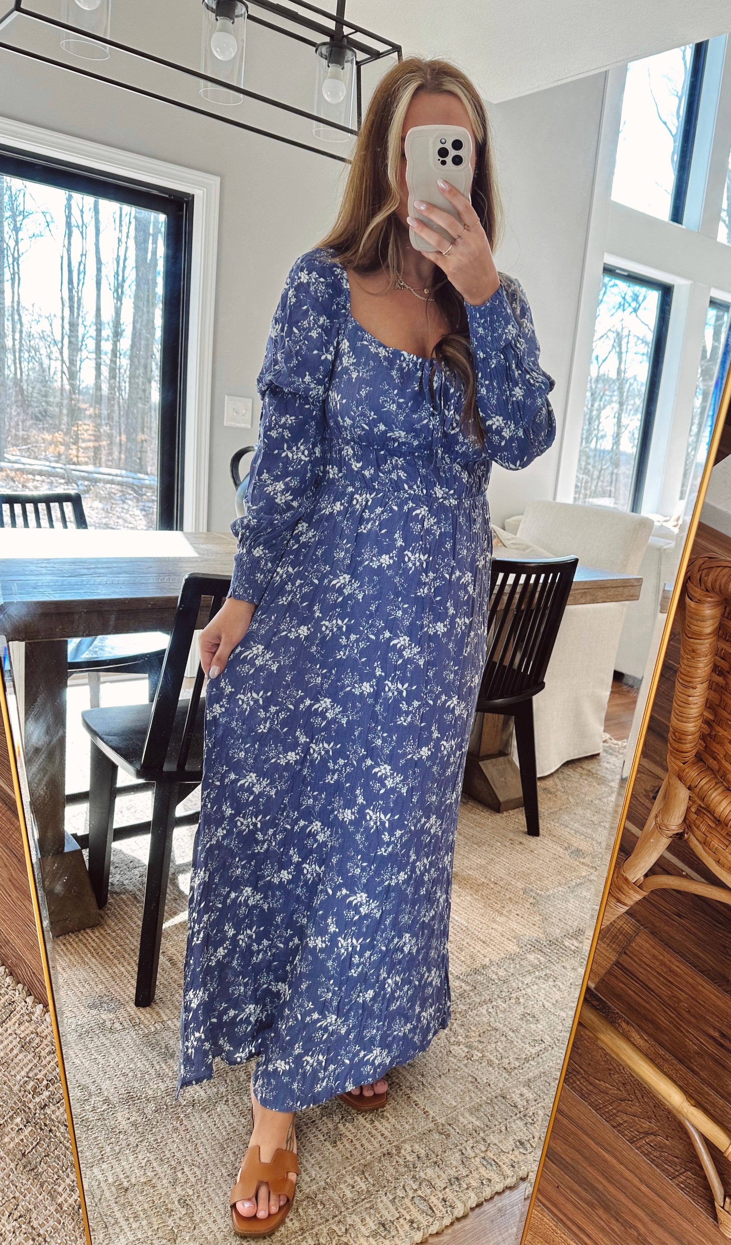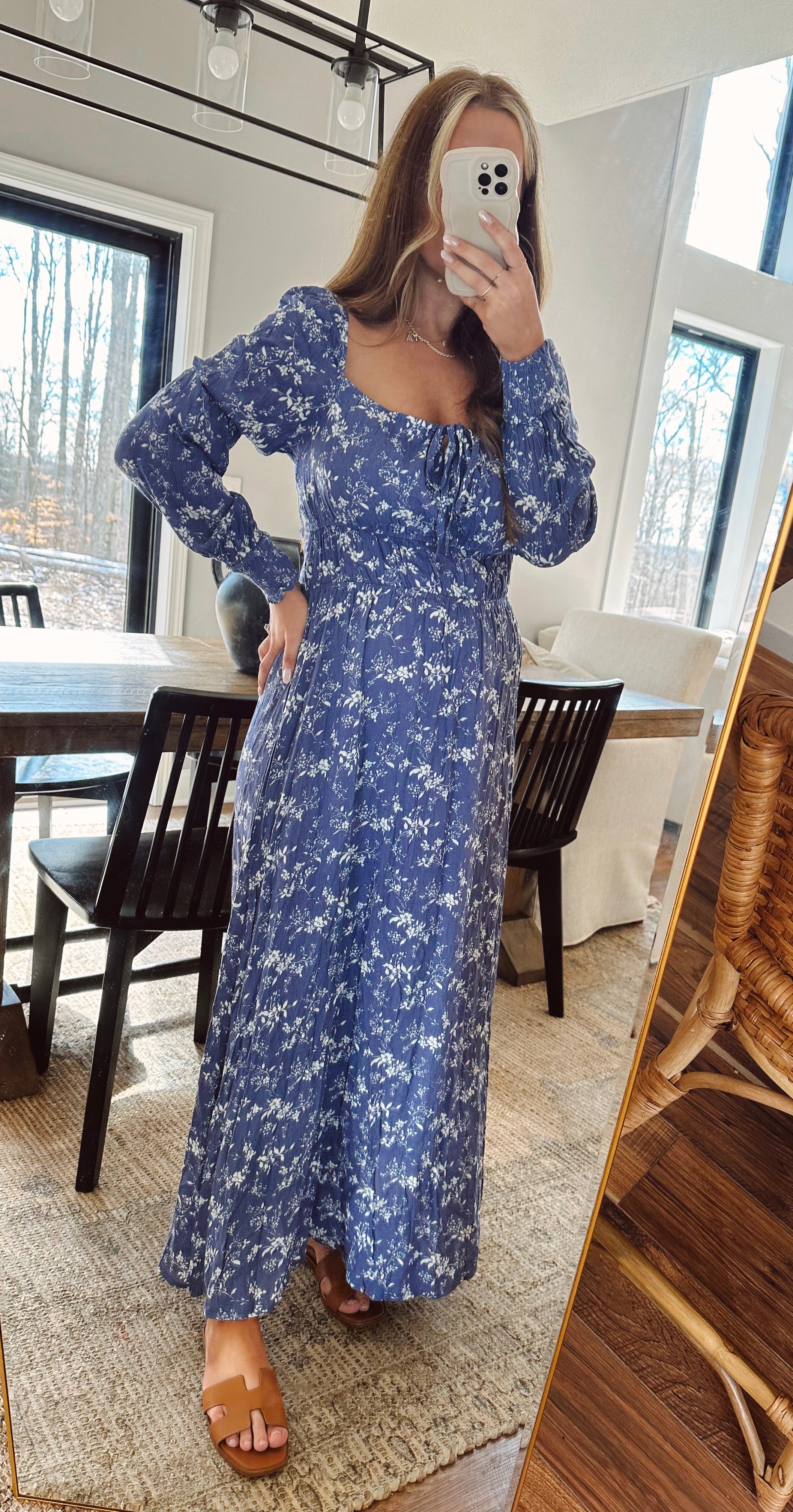 Haylie Navy Floral Smocked Maxi