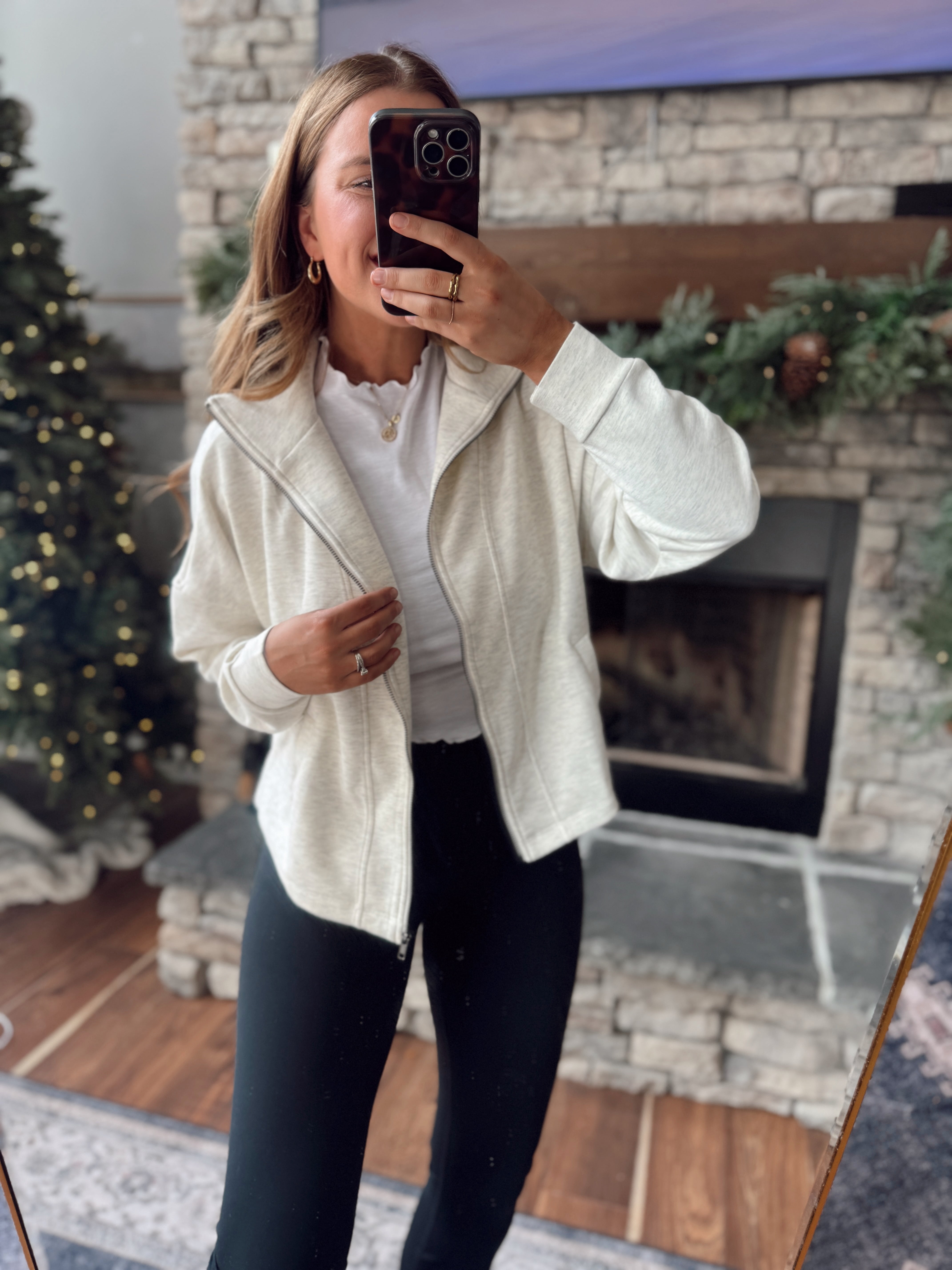 Your new everyday layer is HERE. This scuba-feel zip-up is buttery smooth, structured, and insanely flattering — the perfect mix of sporty + elevated. It instantly pulls a look together whether you’re school-running, shopping, or lounging.