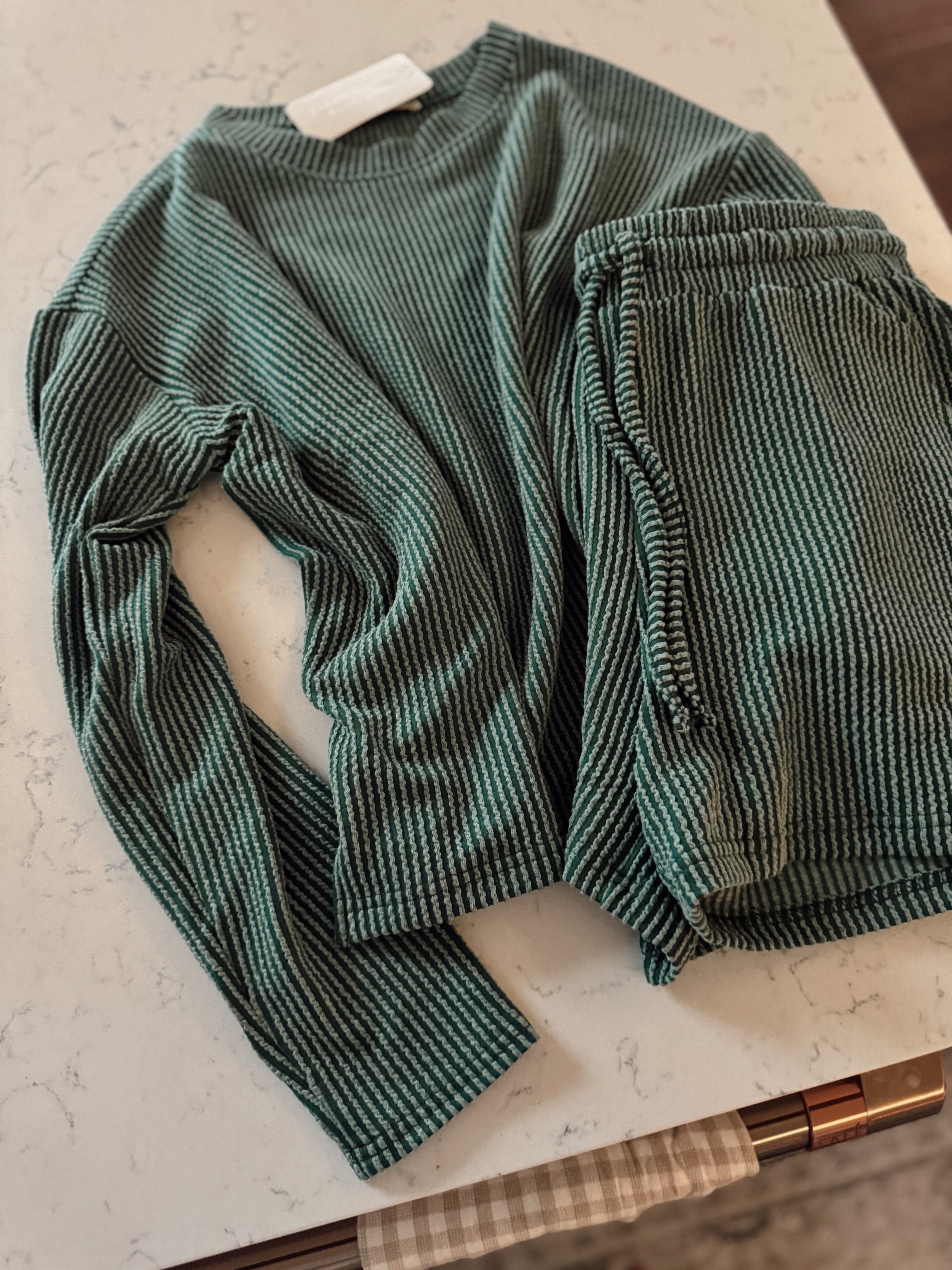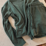 Hunter Green Raised Rib Long Sleeve and Shorts Set
