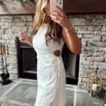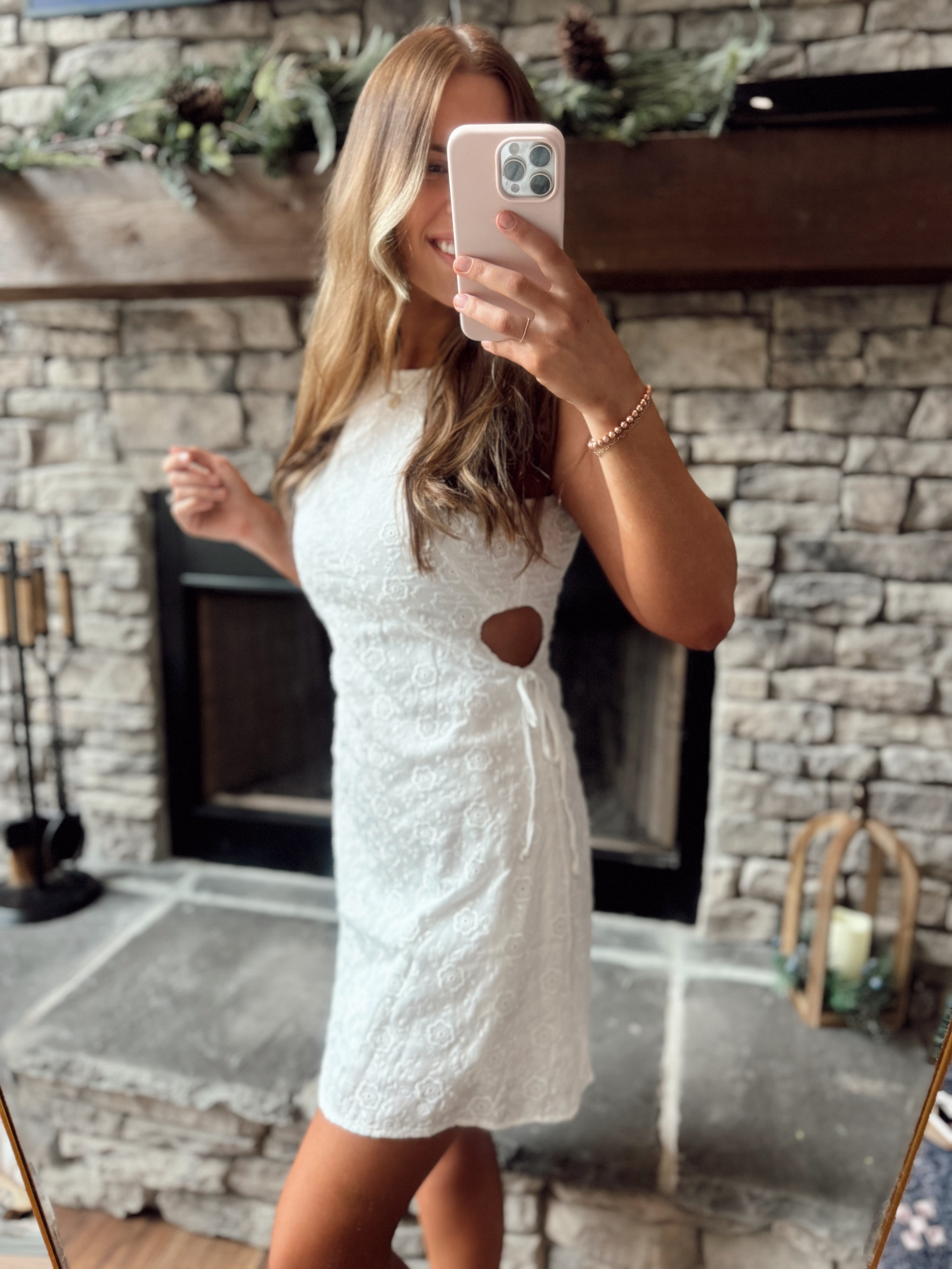 In The Clouds White Cotton Floral Mini with Side Cutouts