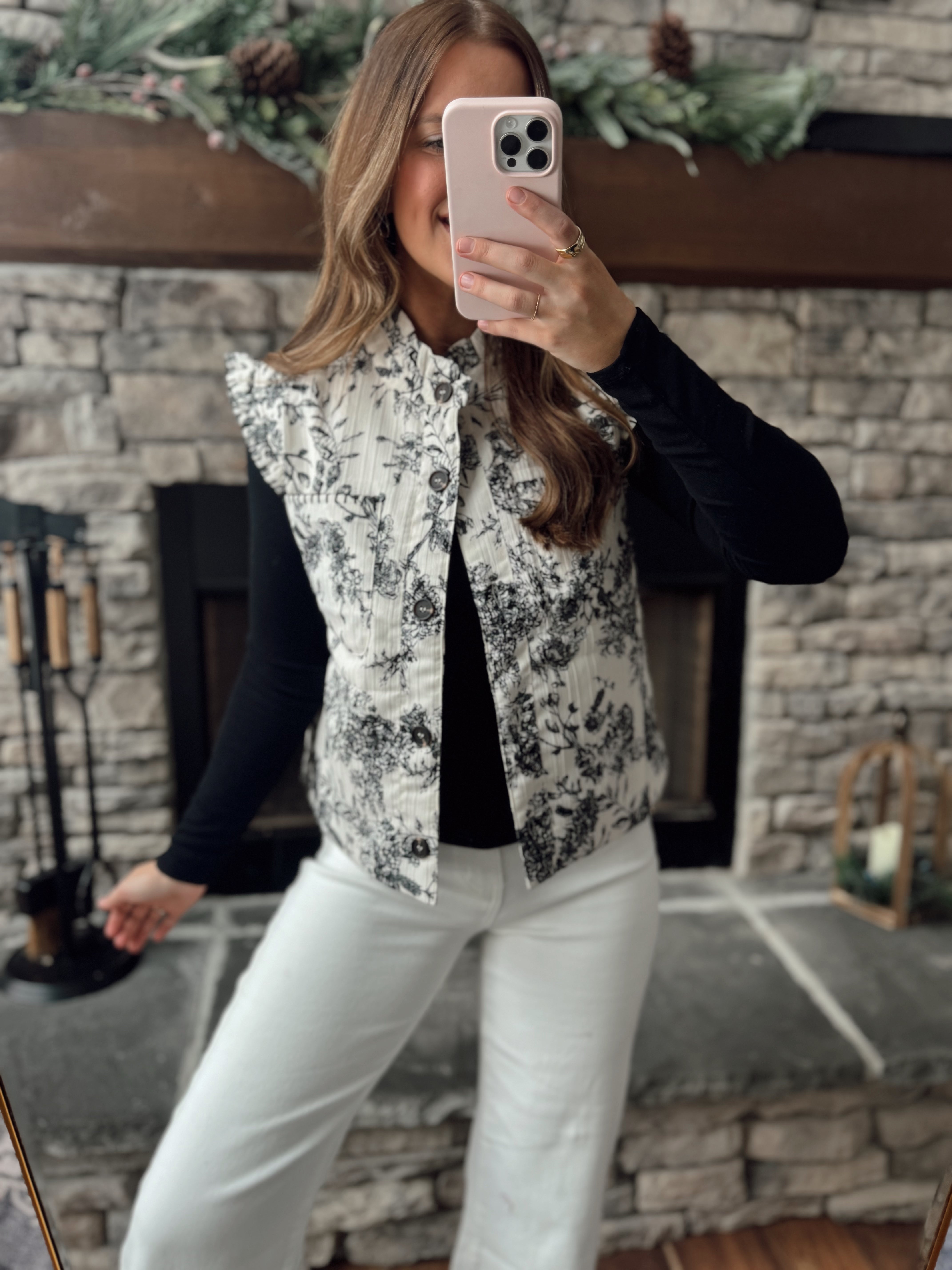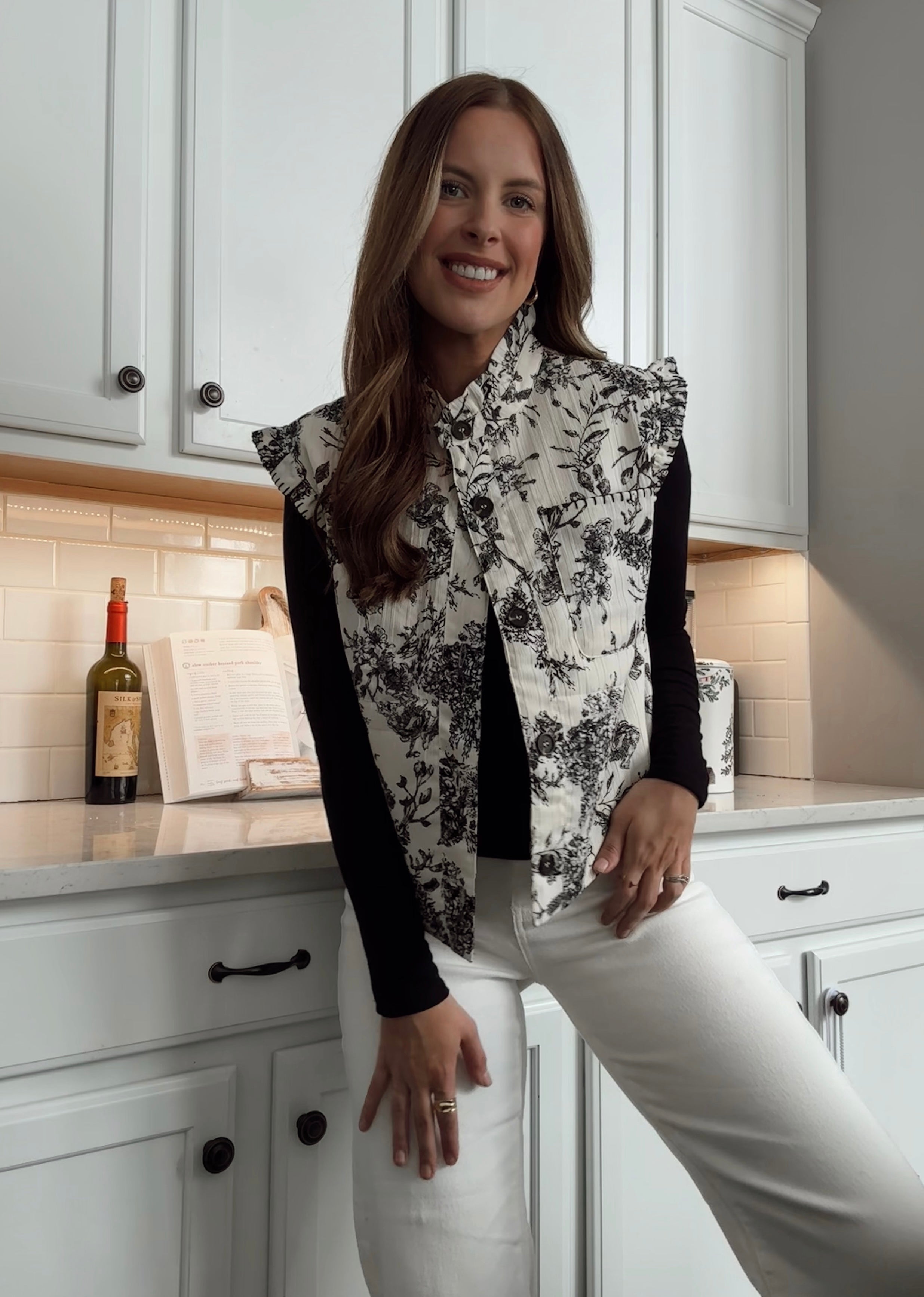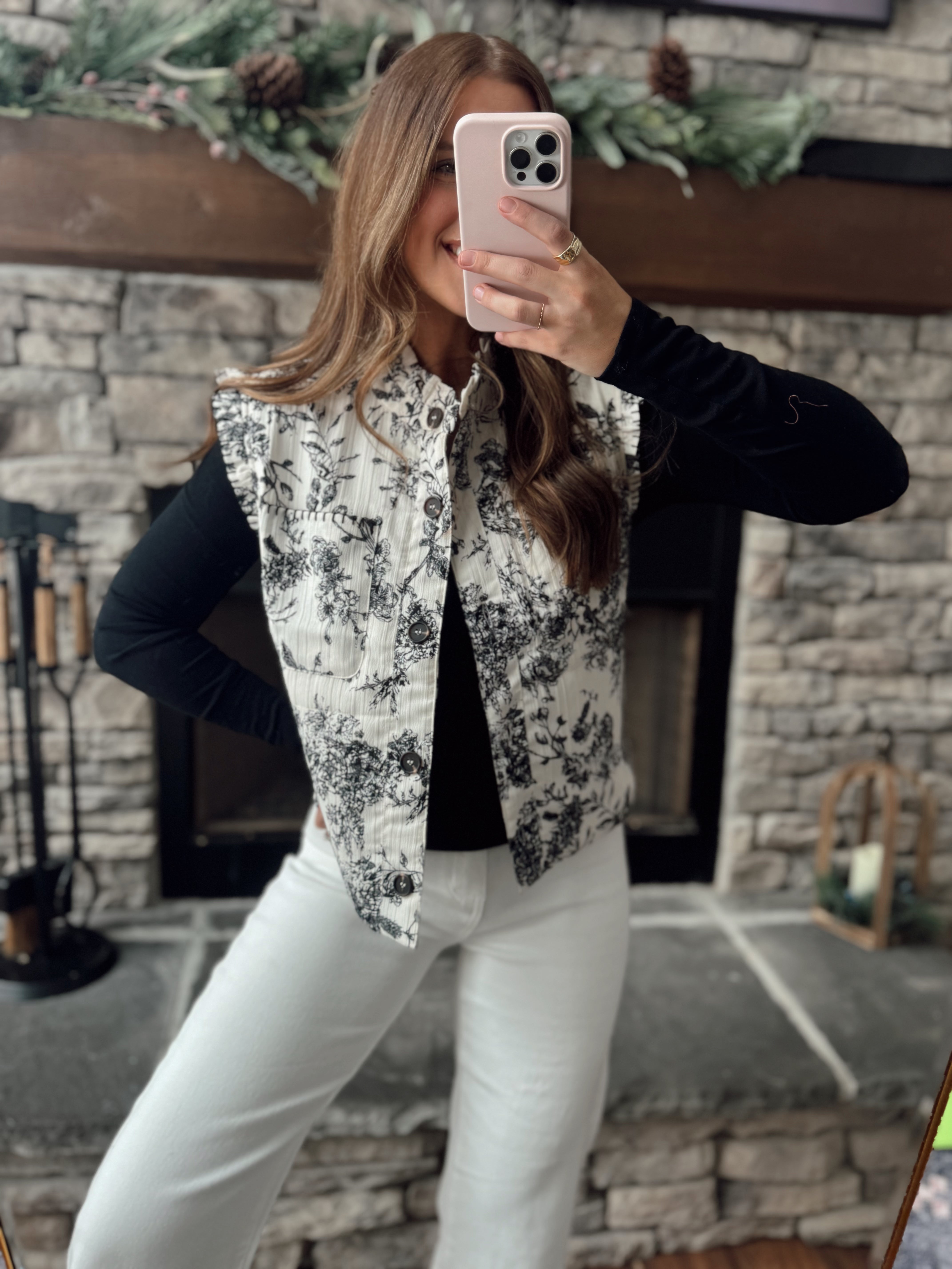Iris Ivory Multi Floral Printed Button Up Vest