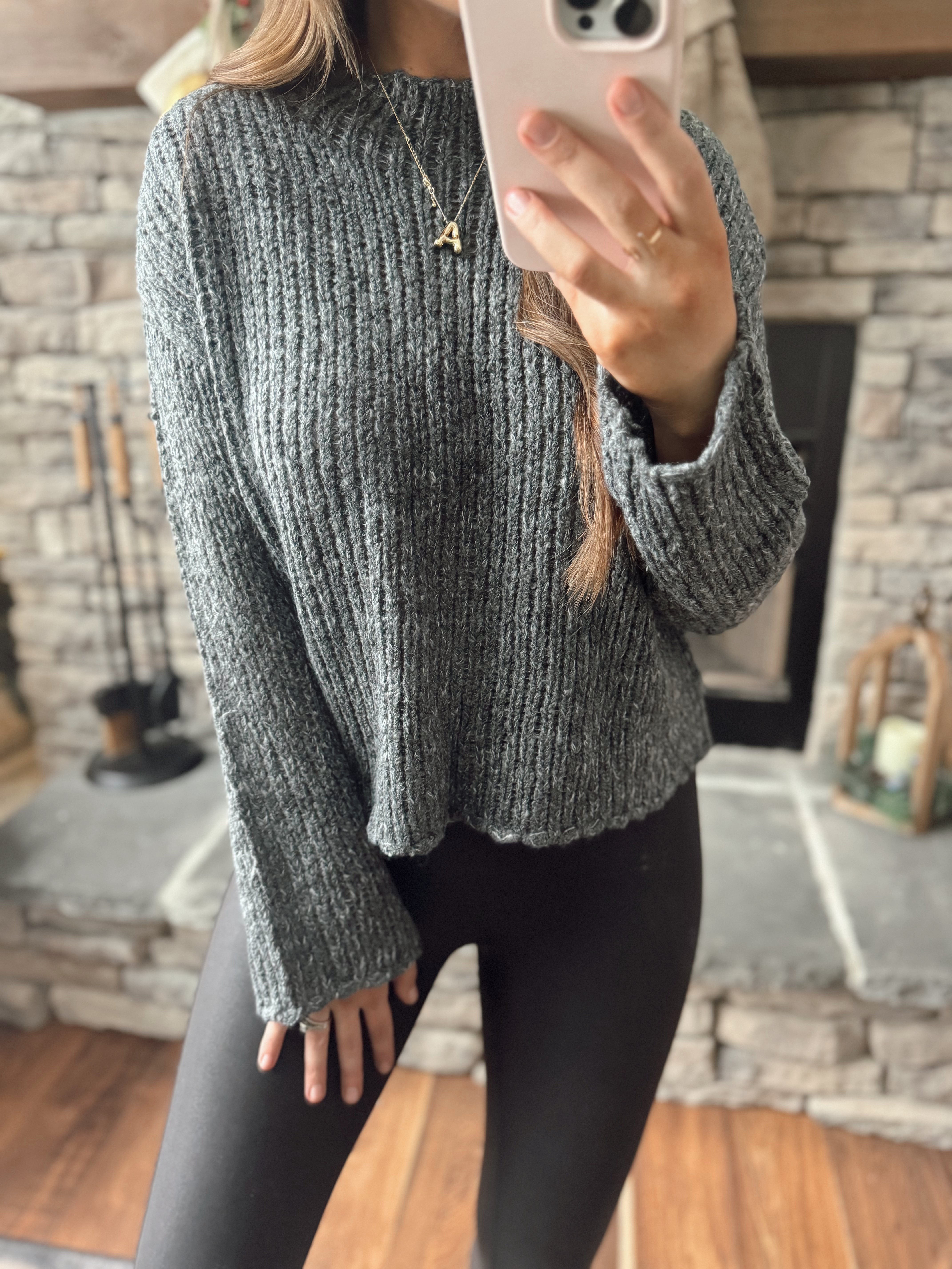 Irma Charcoal Mock Neck Knit Sweater
