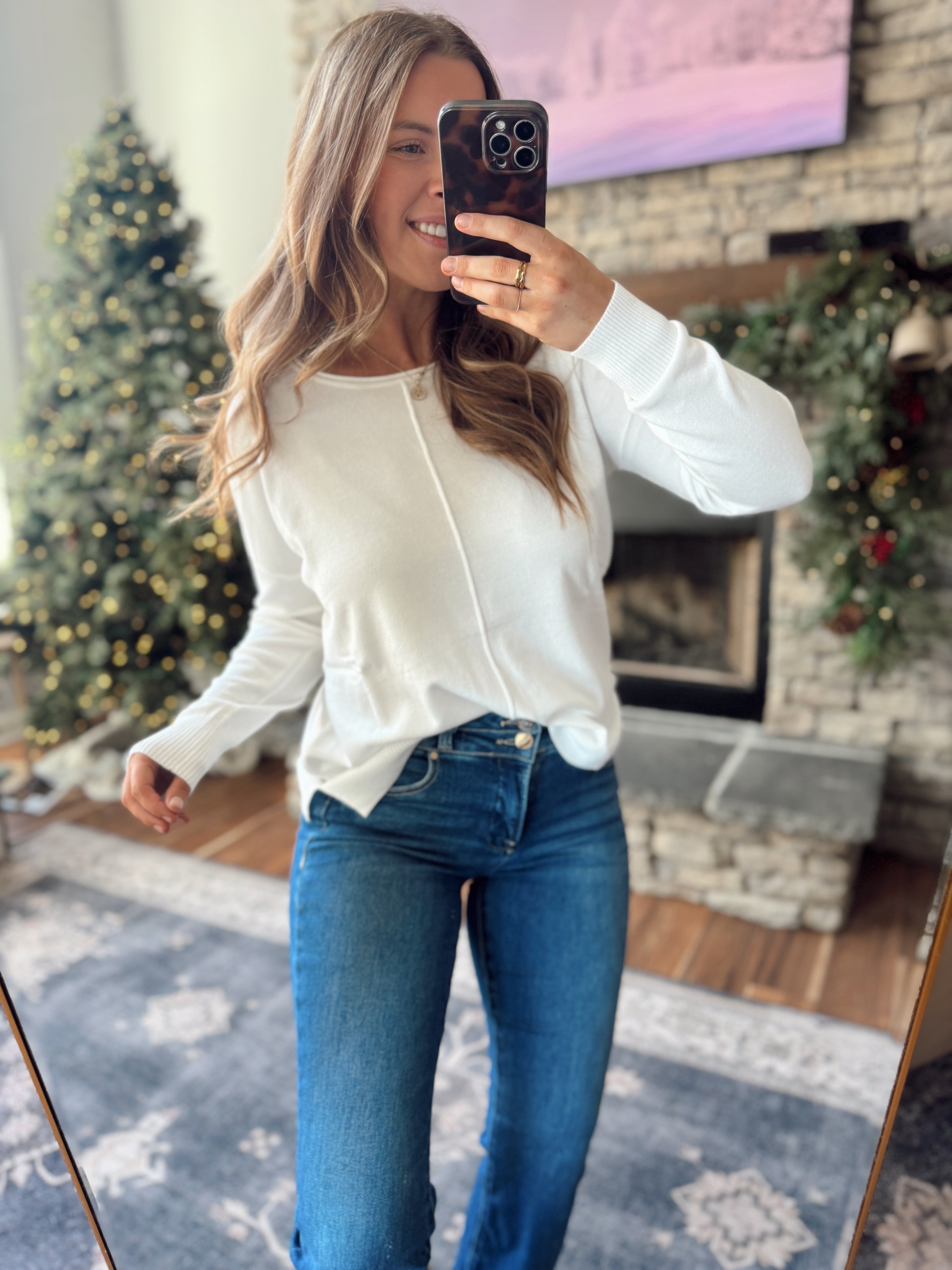 This one’s your grab-and-go favorite — the kind you’ll reach for again and again! Super soft, easy to style, and perfectly relaxed for that effortlessly put-together vibe. Features a subtle front seam detail and ribbed cuffs that give it a little something extra.