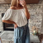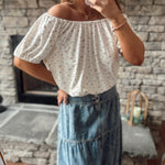 Ivory Floral Rose Pattern Off Shoulder Short Sleeve Top