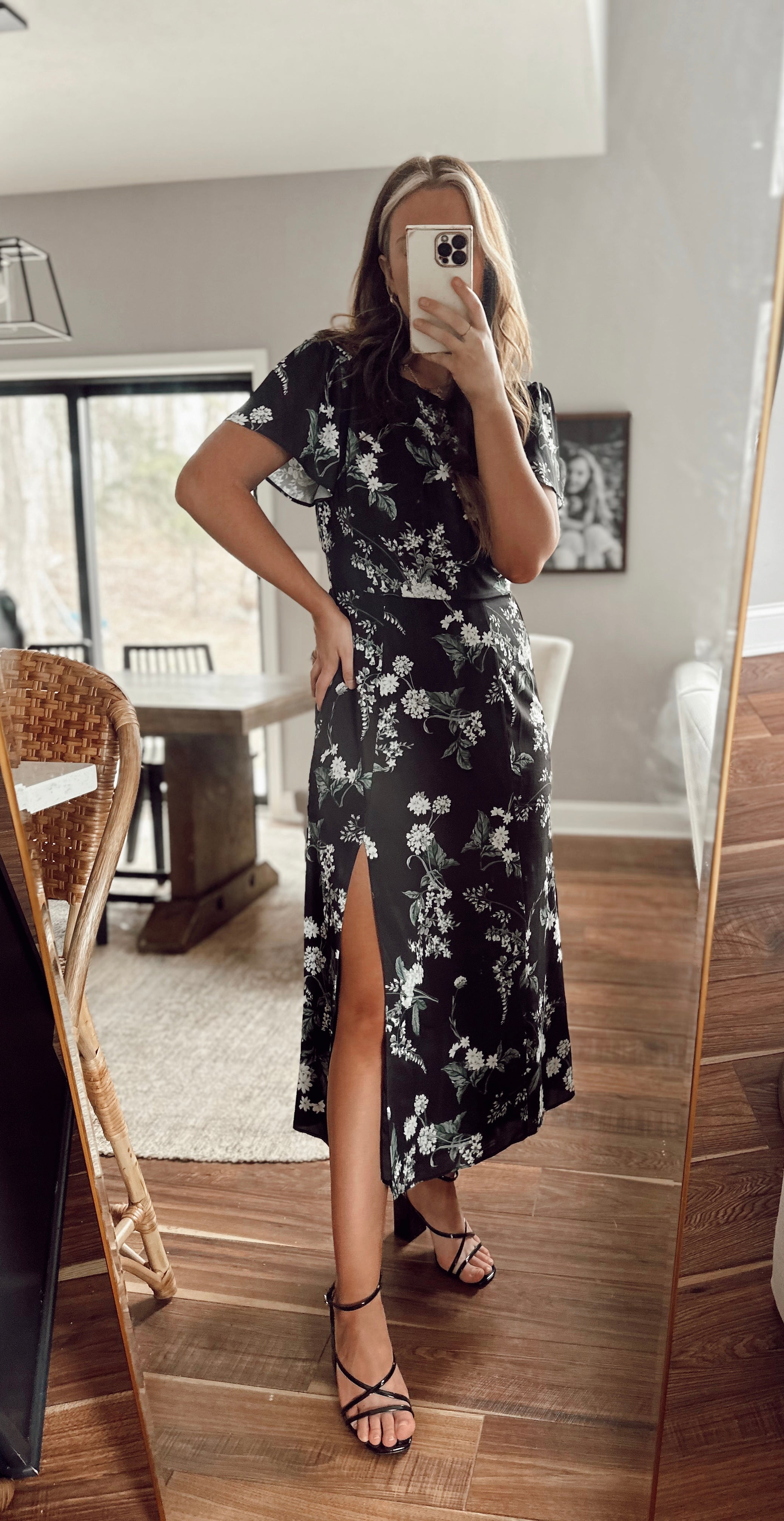 Such a gorgeous midi! Very flattering - flutter sleeves. True to size fit.