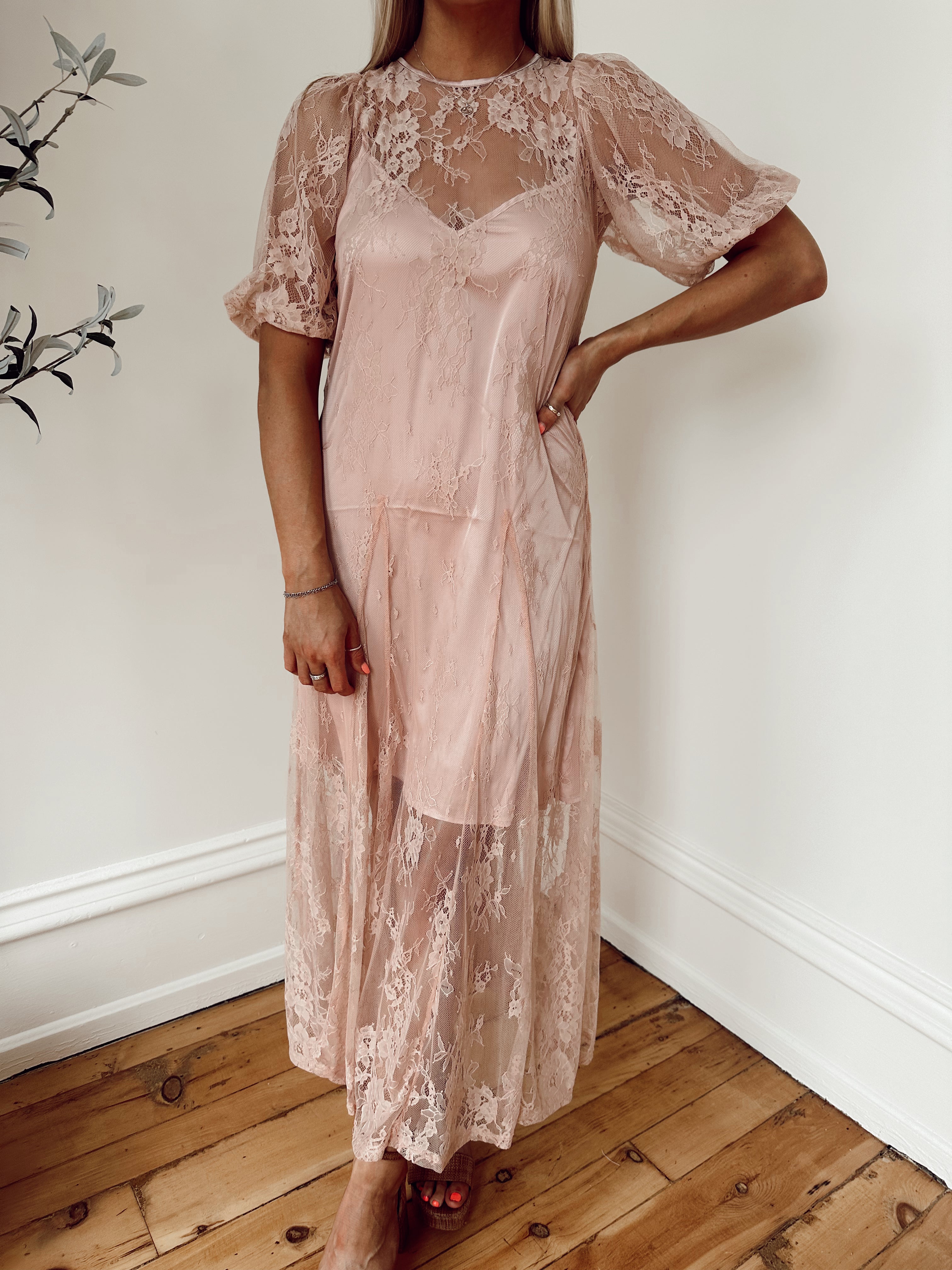 Two separate pieces - one being the lace that goes over top the satin slip! A relaxed fit - absolutely stunning on. And not bad for the price point!