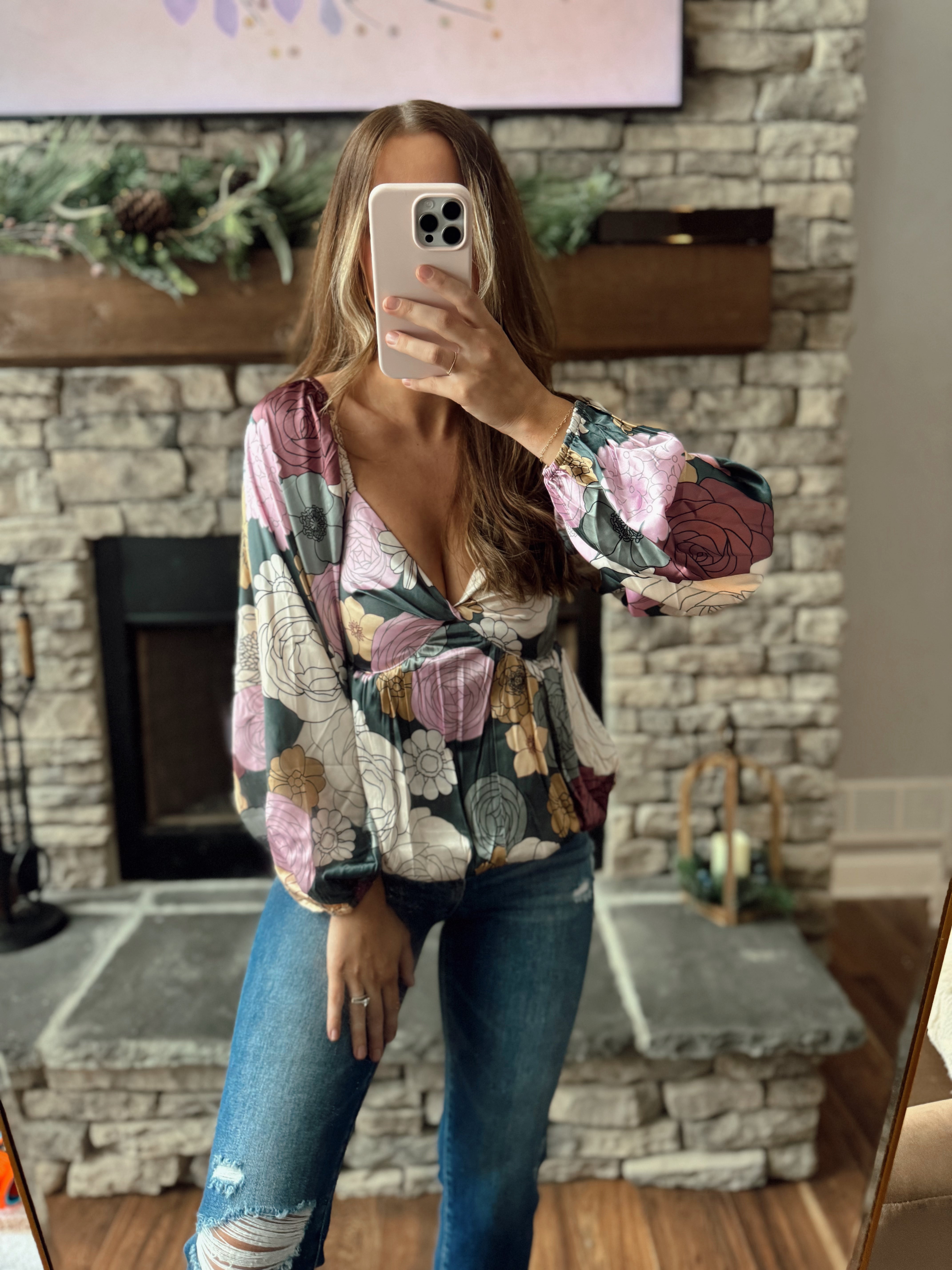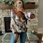 Jasmine Teal Floral Print Front Twist Babydoll Blouse