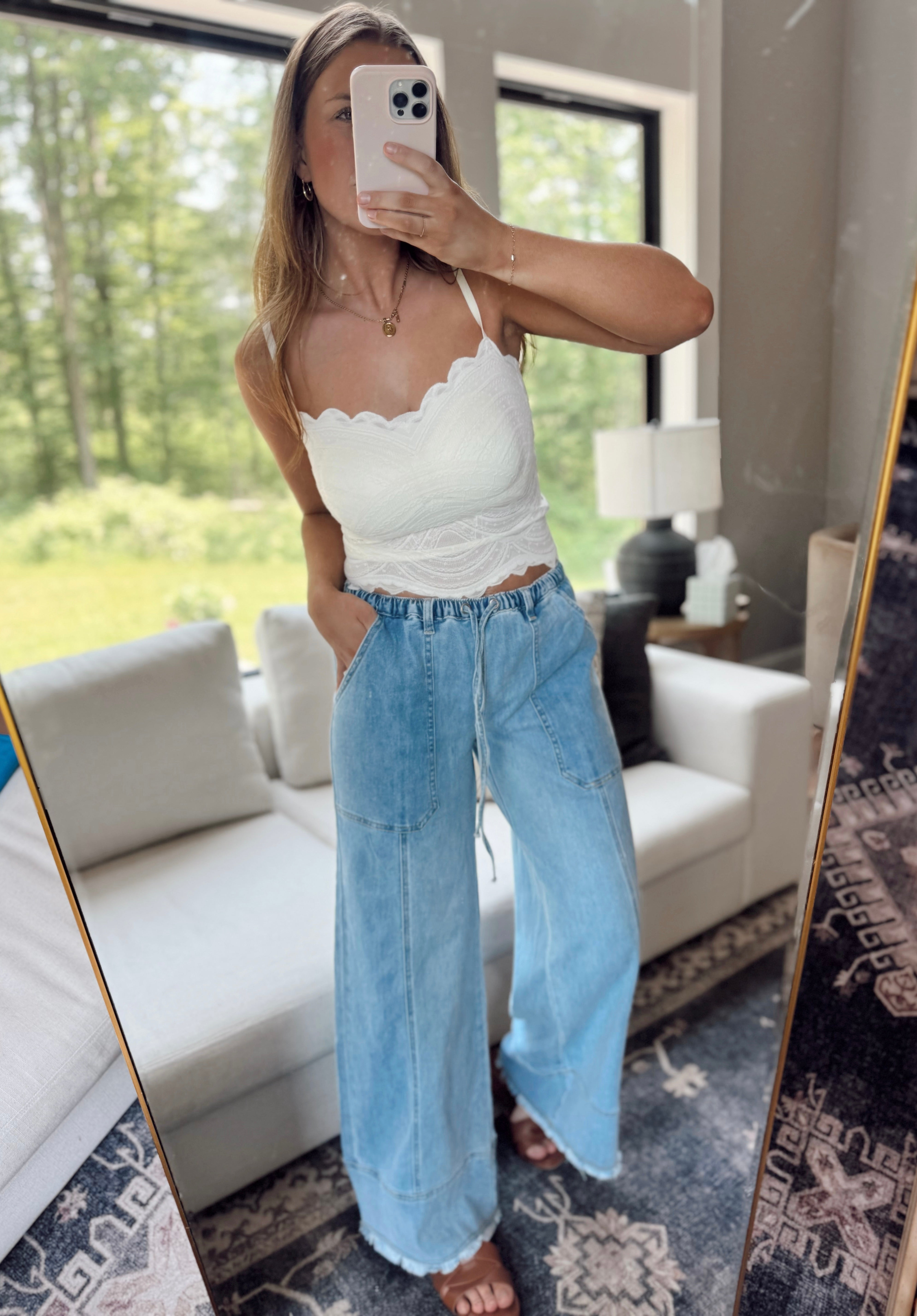 The wash - the seams.. I love every detail. These do run spacious so you can size down! elastic comfortable waist band too. I’m 5’7, 3, small!