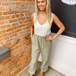 We love a one piece! How amazing is this jumpsuit? A relaxed true fit! Our model is a size 26, 5’4 and in the small! Elastic fitted cuffs at the bottom, deep patch pockets & high waist!