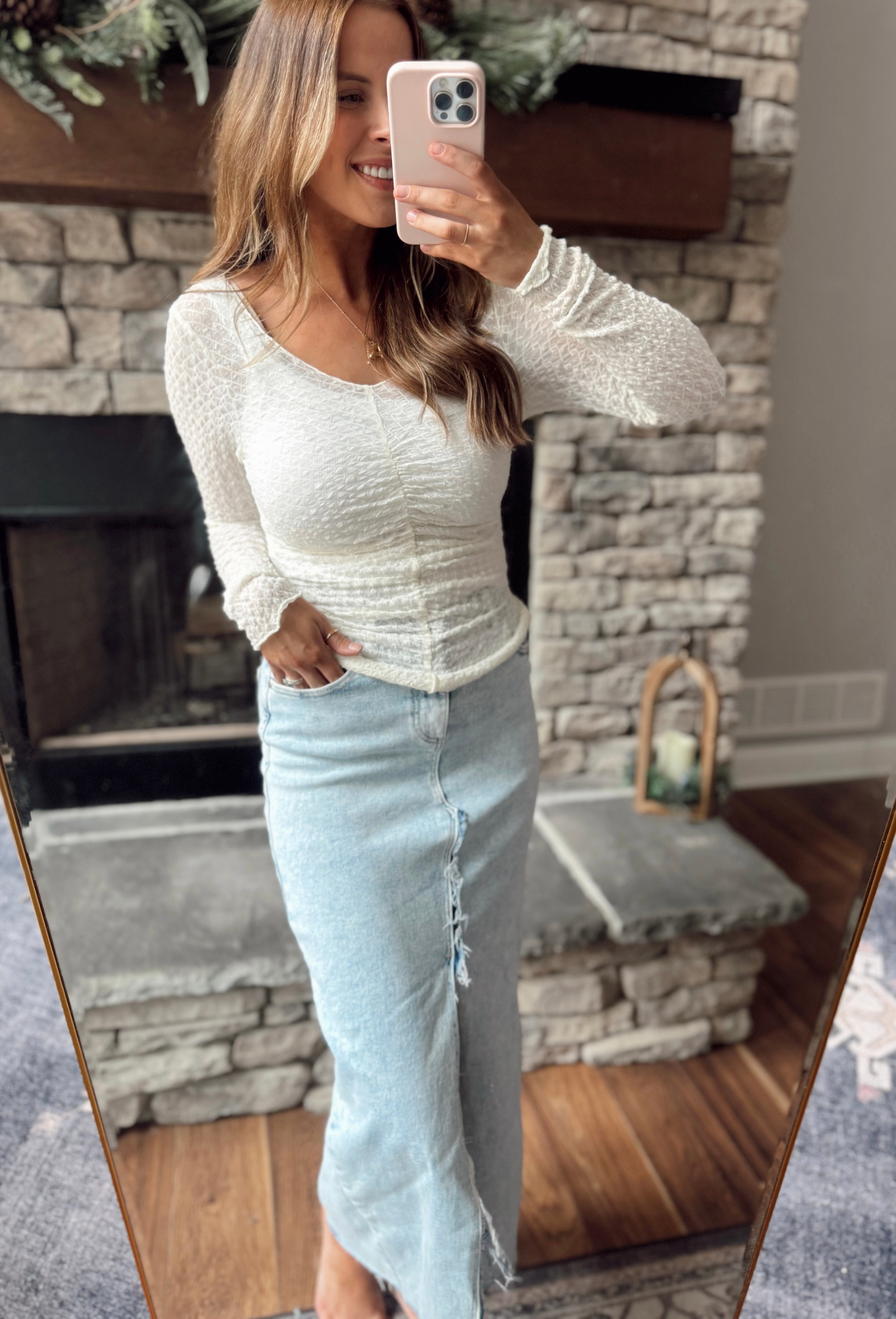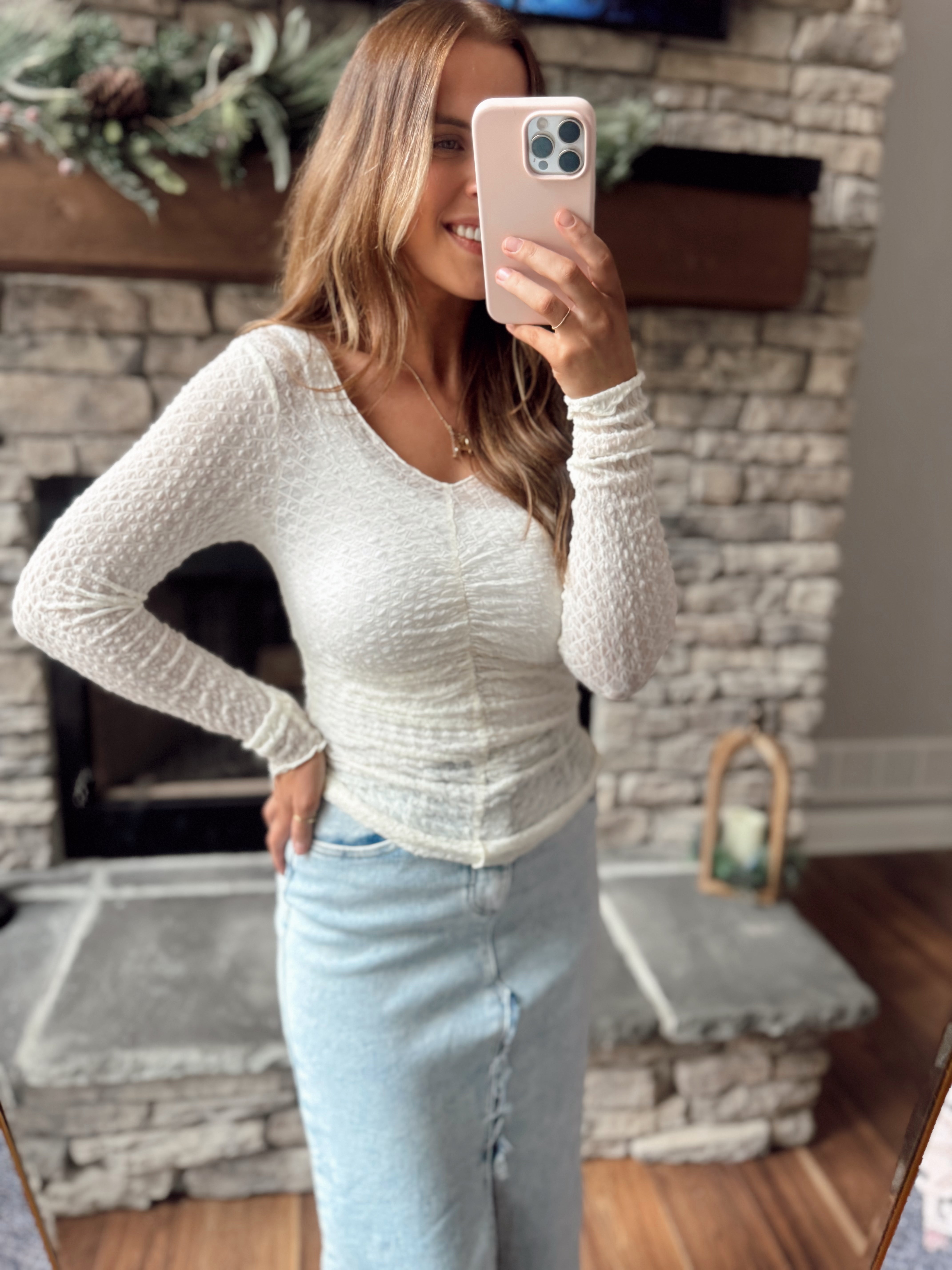 Juniper Cream V-Neck Cinched Bodycon Long Sleeve