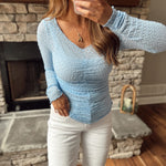 Juniper Periwinkle V-Neck Cinched Bodycon Long Sleeve
