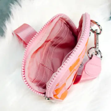 This must have accessory can hold all things for your everyday lifestyle. This wristlet has so many fun features including a removable wrist strap, a front exterior zipper pocket for cash or credit cards, 3 interior card holders, 3 interior lipgloss holders, and an interior open cash pocket. On the back, there is another zipper pocket, and an open faced pocket for your ID!