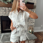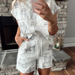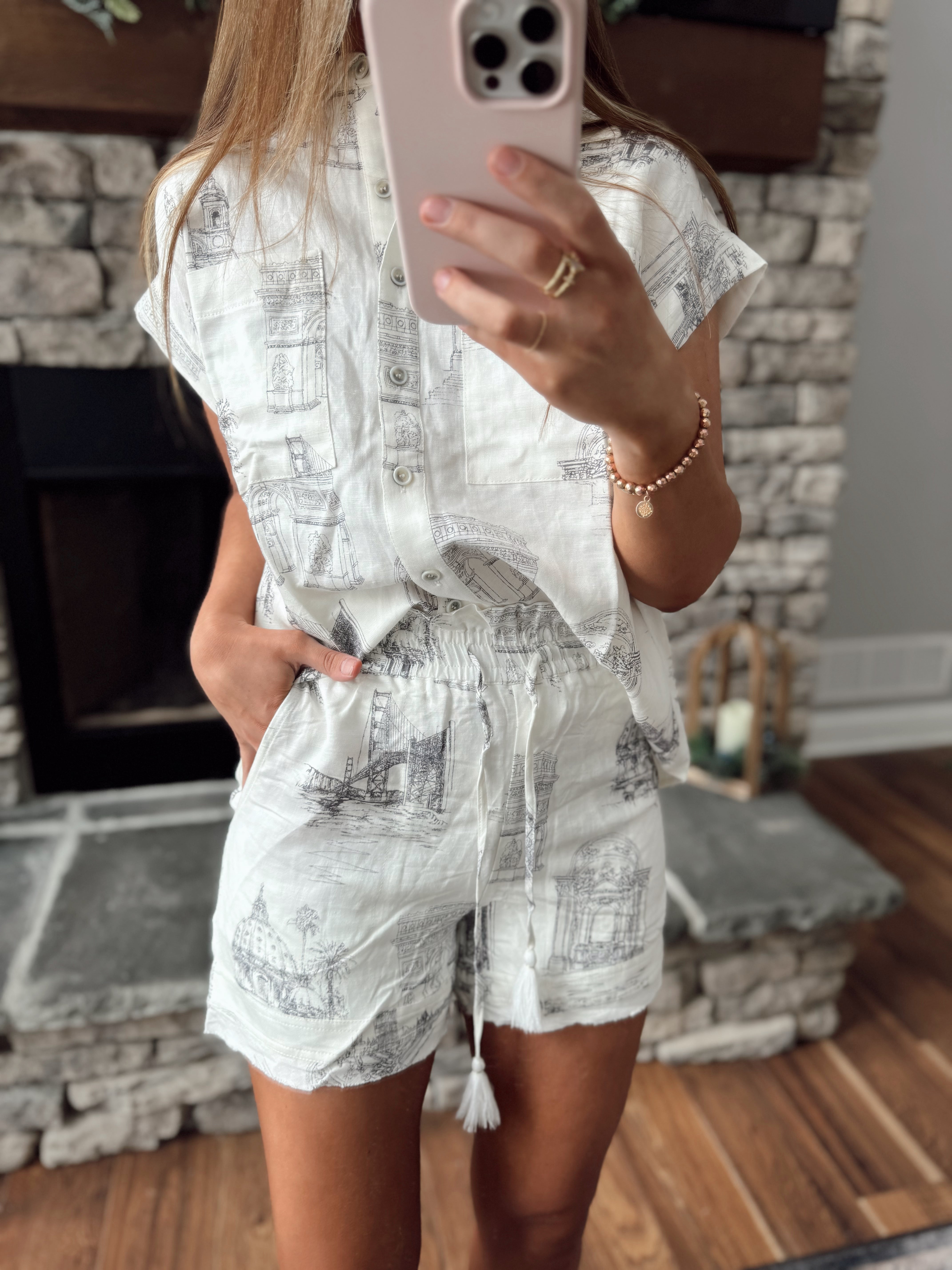 Let's Travel Ivory/Navy Scenic Linen Shorts