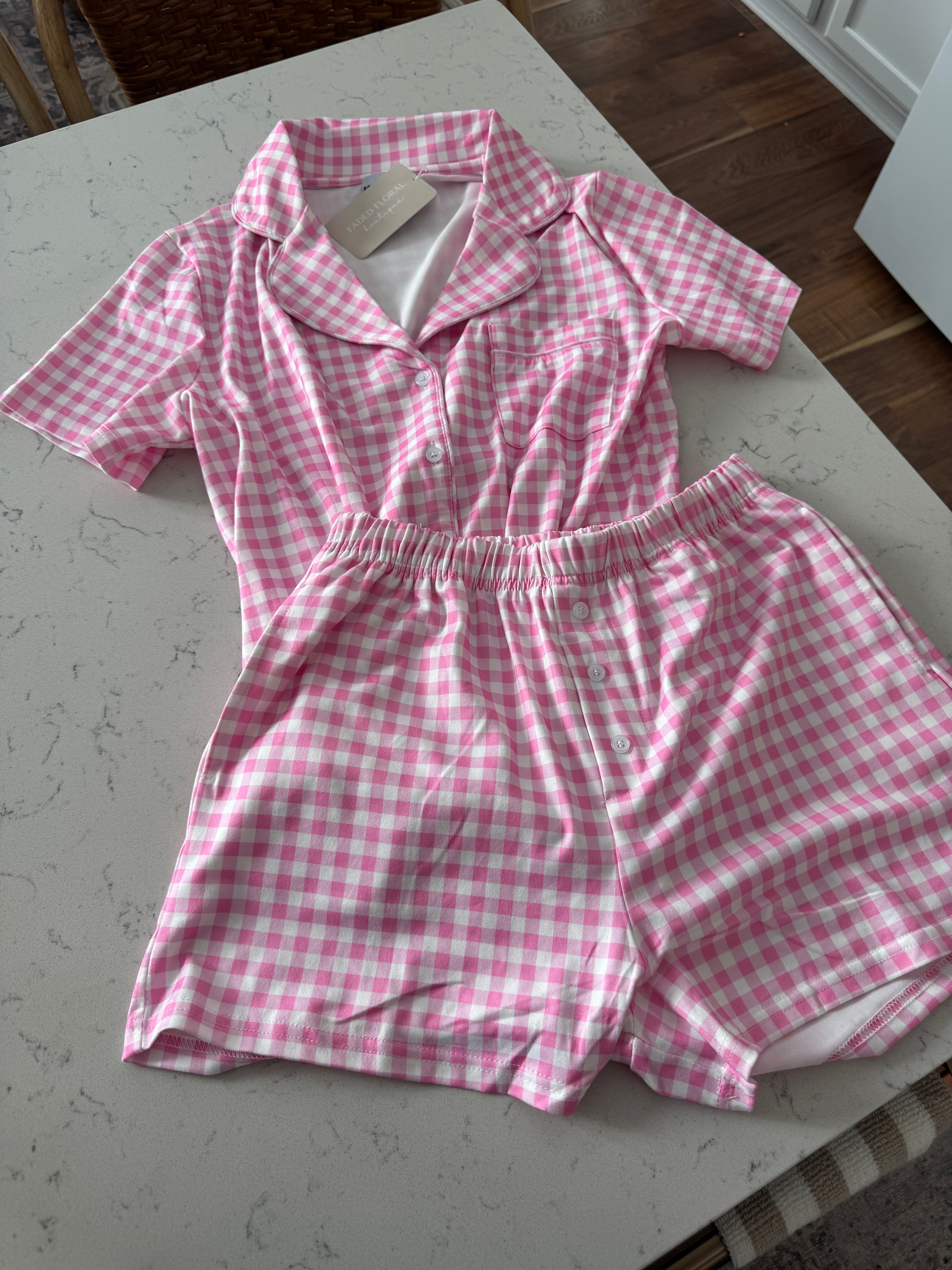 Light Pink Plaid Pajama Set