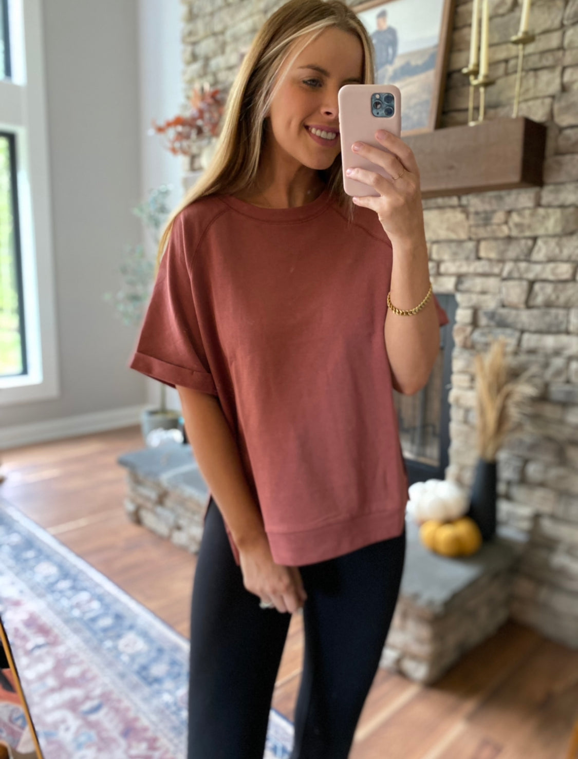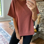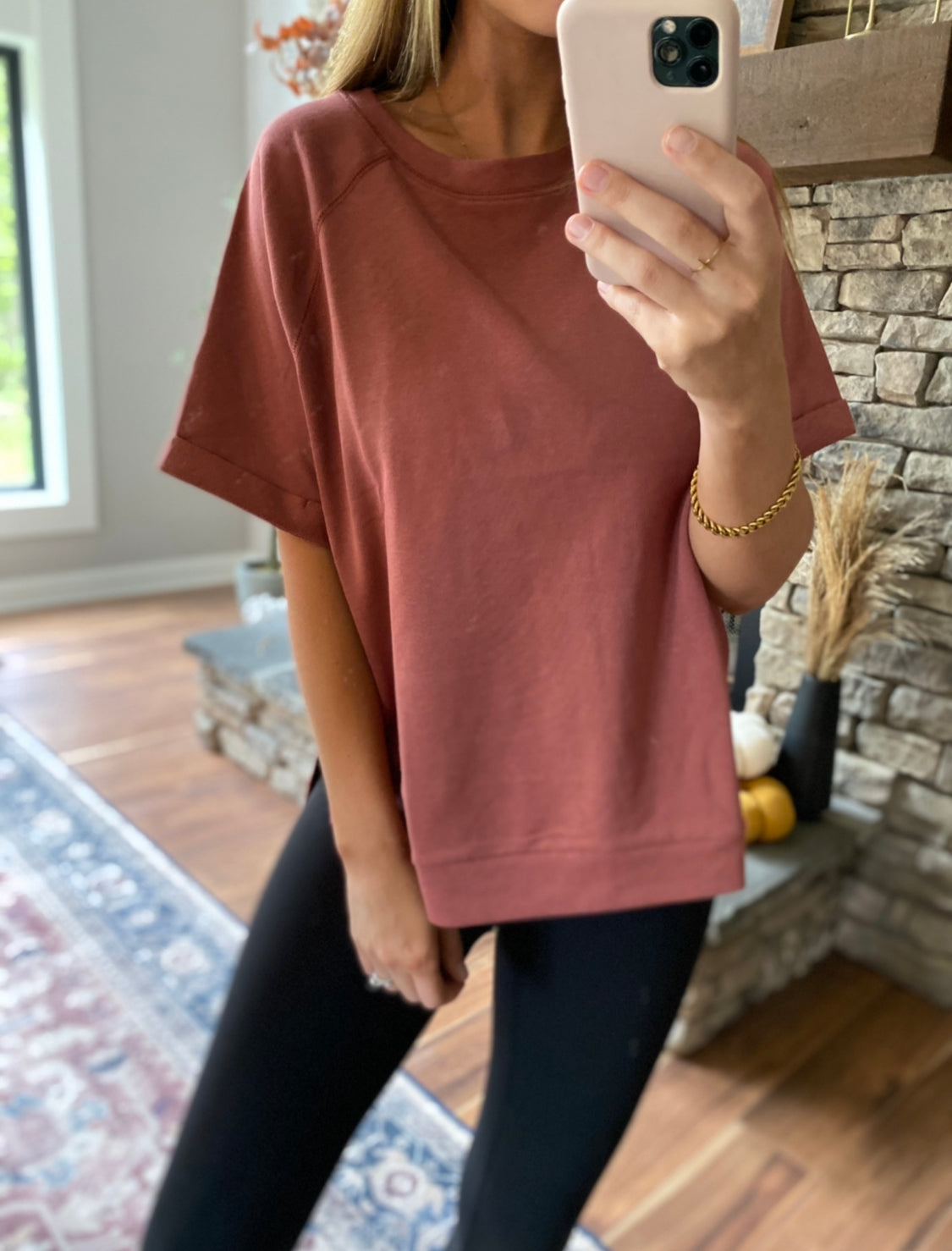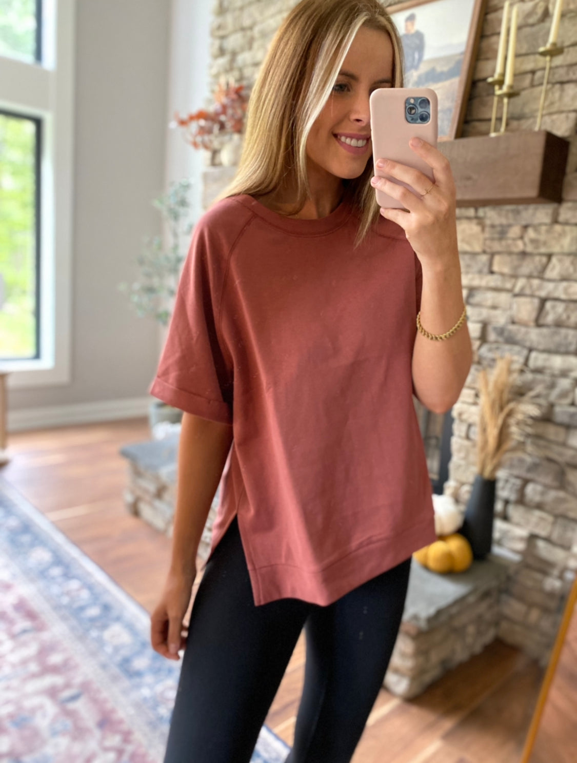 French terry knit top with side slits. Perfect fall athleisure color tooo! Relaxed fit!