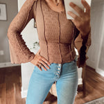 Making a Scene Mocha Bell-Sleeve Contrast Top