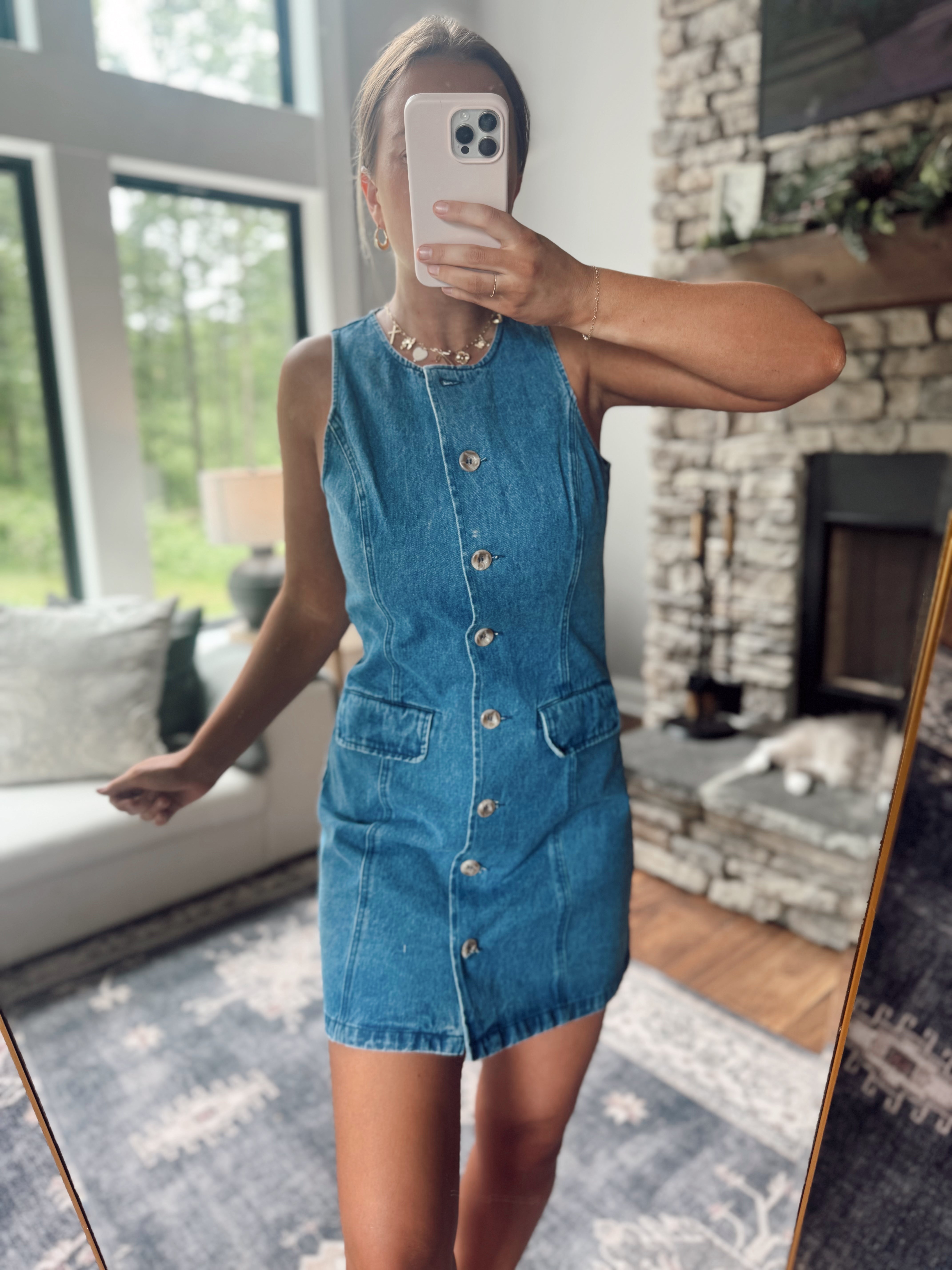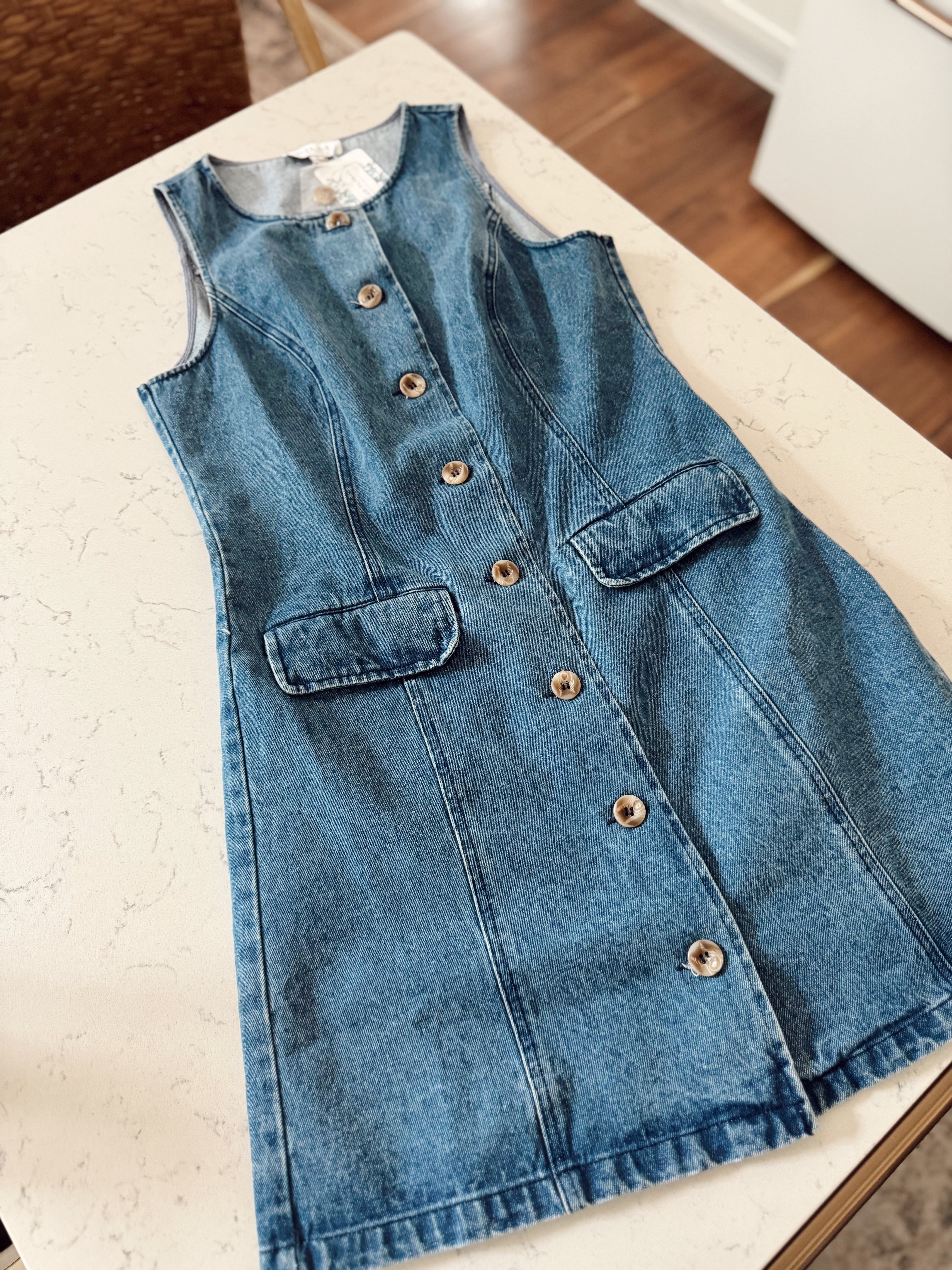 Just the cutest denim button up! A relaxed fit. A great length. A bit stretchy. Working buttons