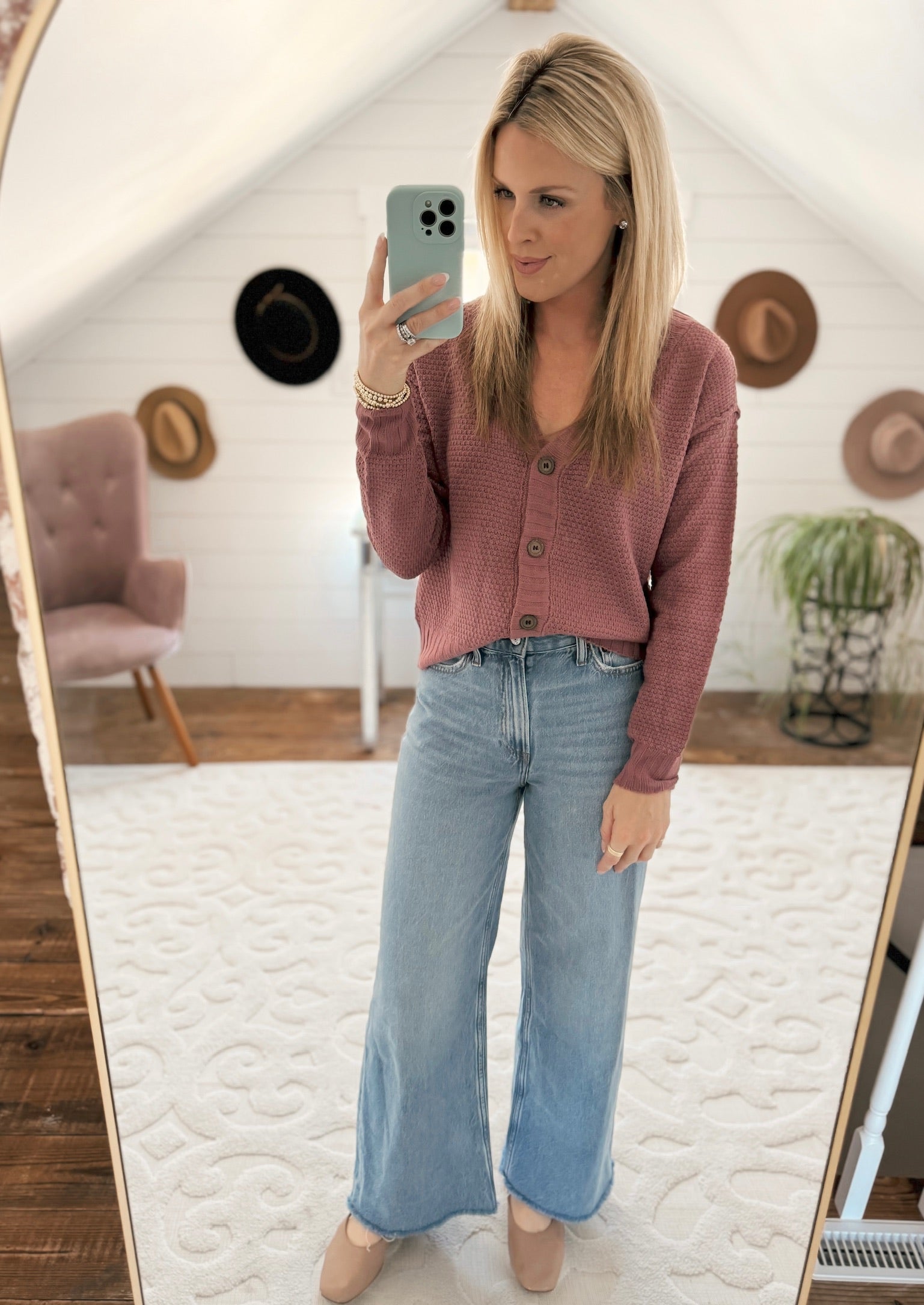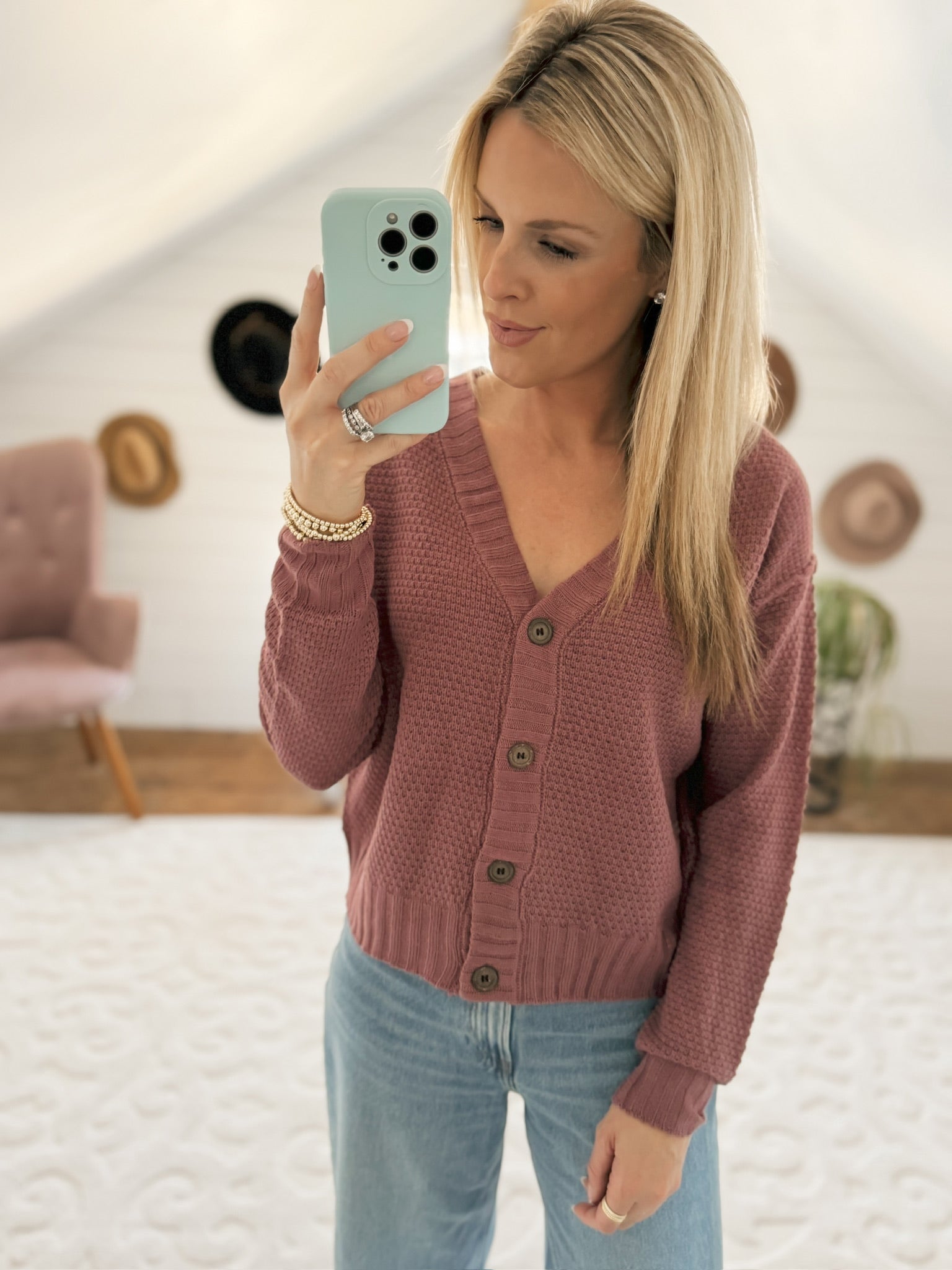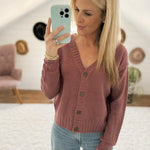 Mia Mulberry V-Neck Button Down Waffle Knit Cardi
