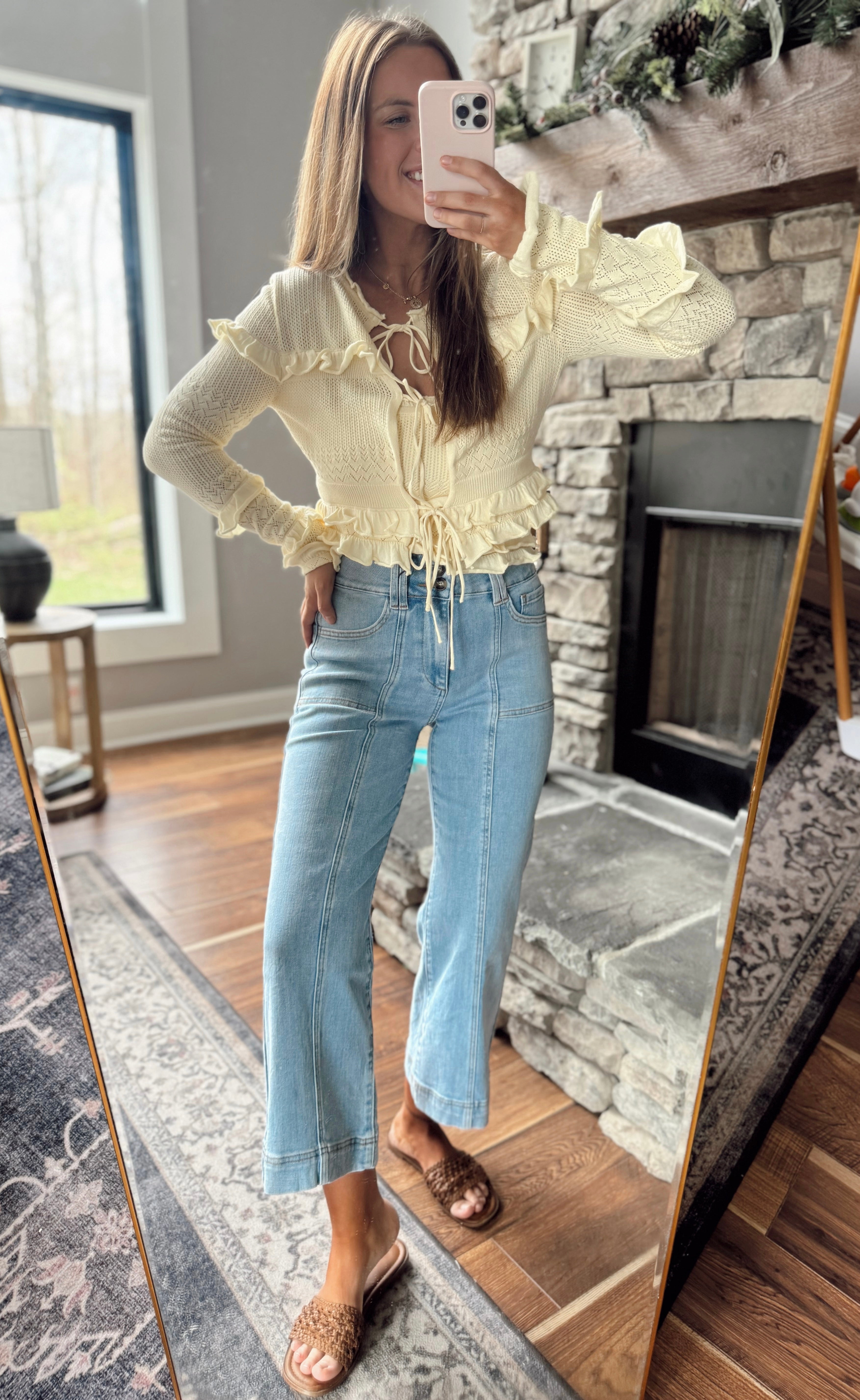 Mica Light Super HR Wide Crop Seam Detailing Denim