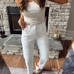 Mica White Super High Mom Cargo Pants