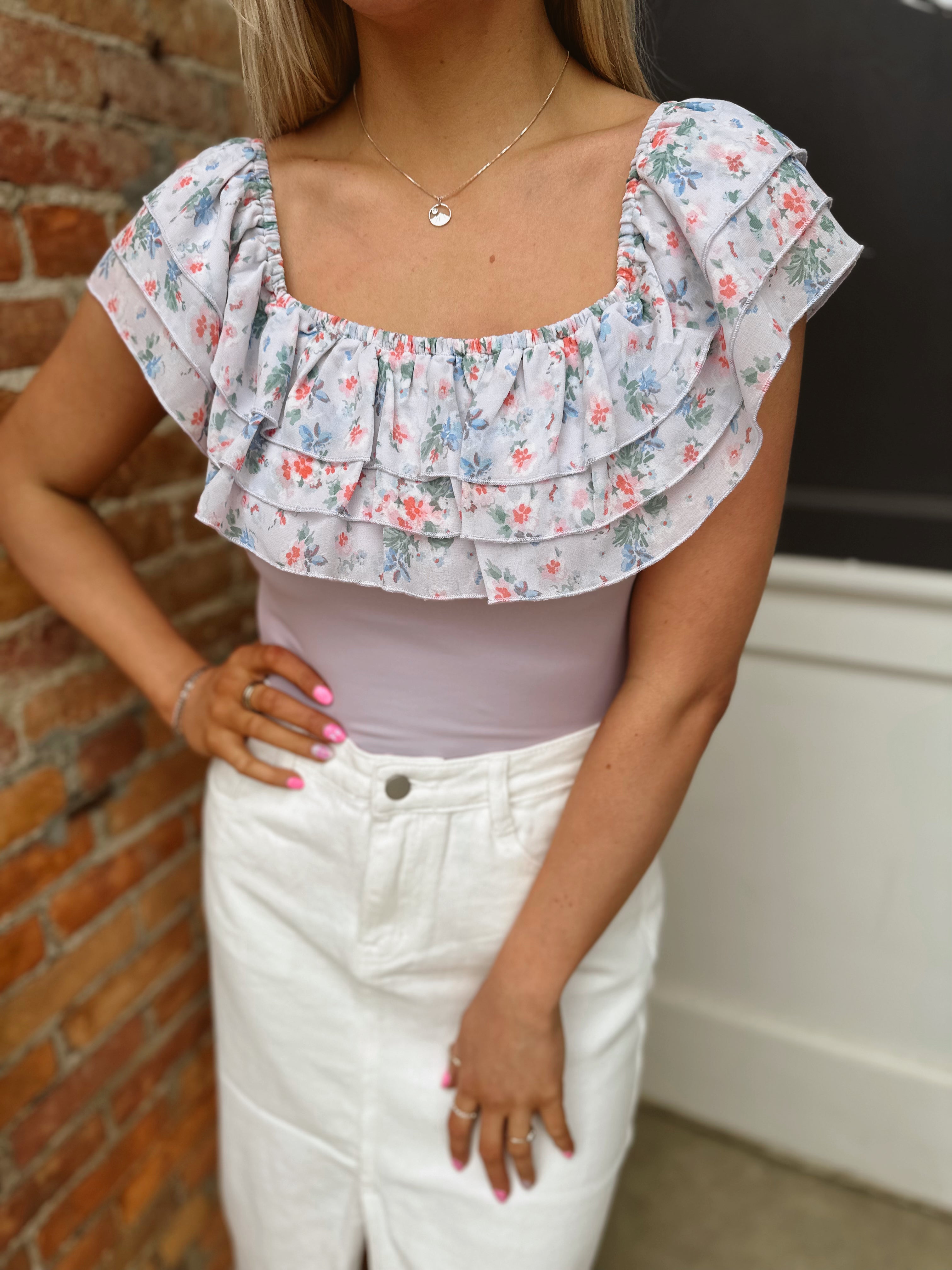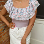 The most adorable floral bodysuit! Can be worn off shoulder or on. True to size fit.