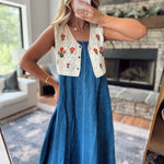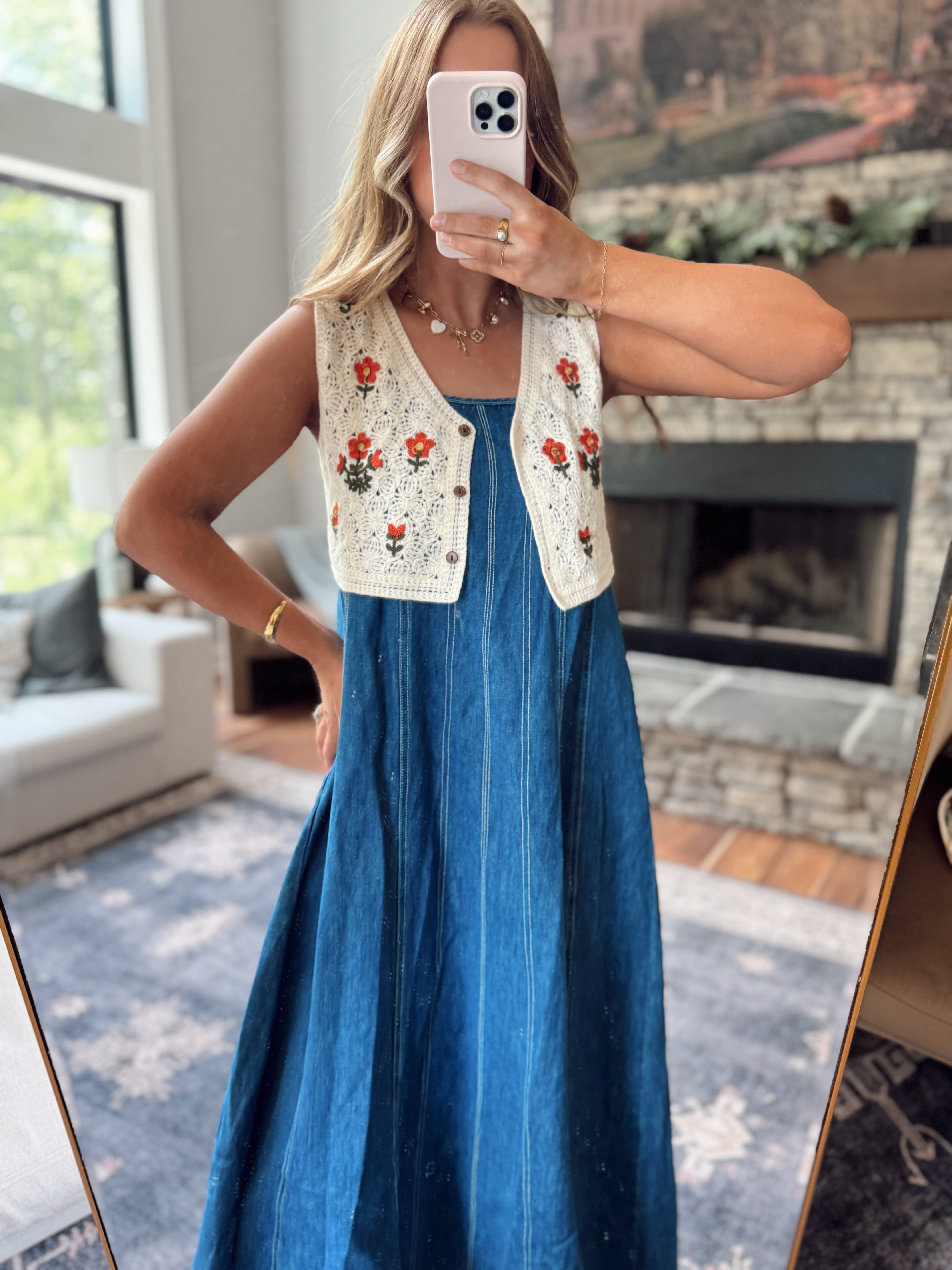Natural Blooming V-Neck Cropped Crochet Knit Tank