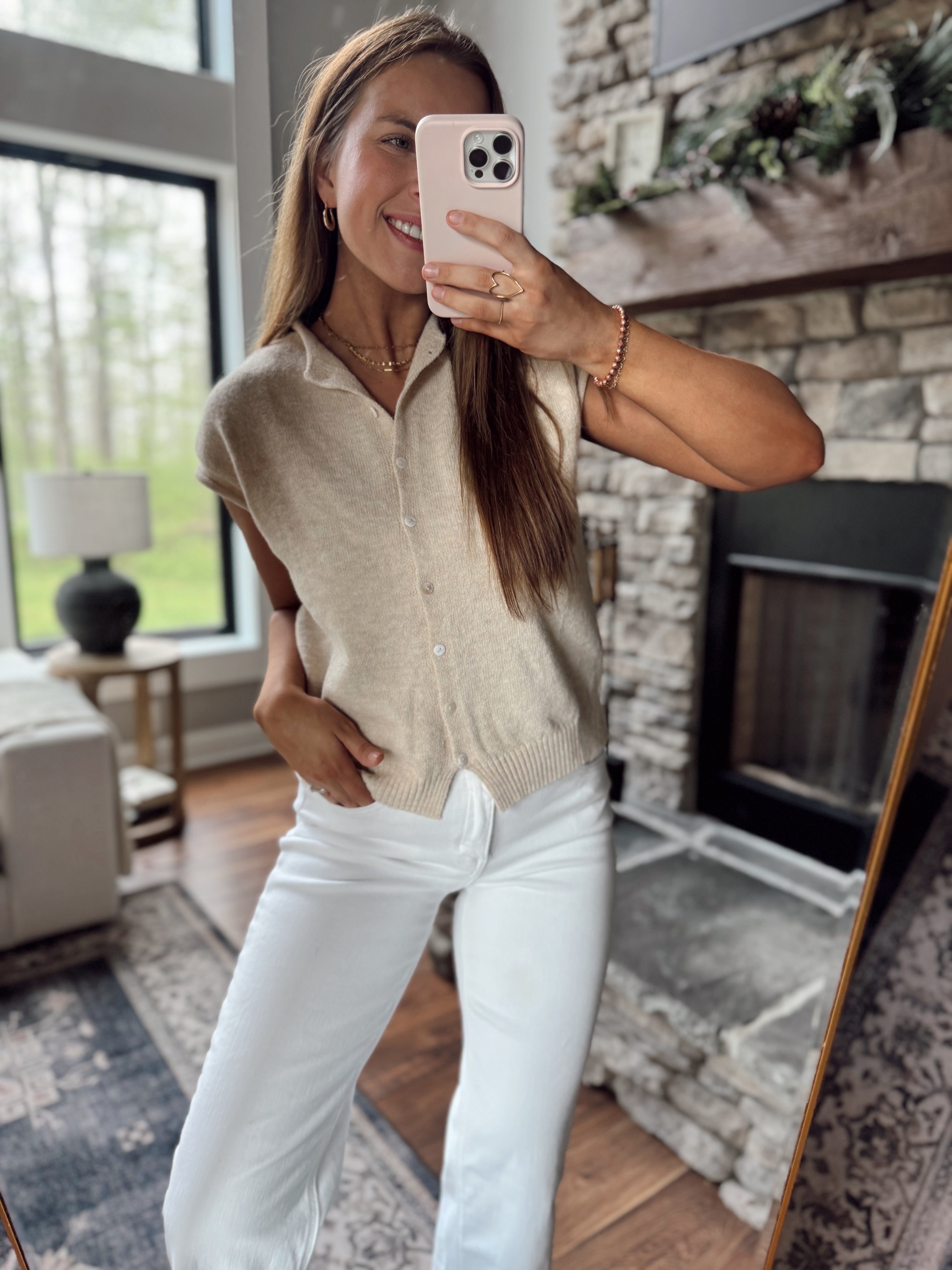 So soft! Lightweight and relaxed fit! I love that it’s not totally sleeveless but has a little sleeve if you’re self conscious of your arm.