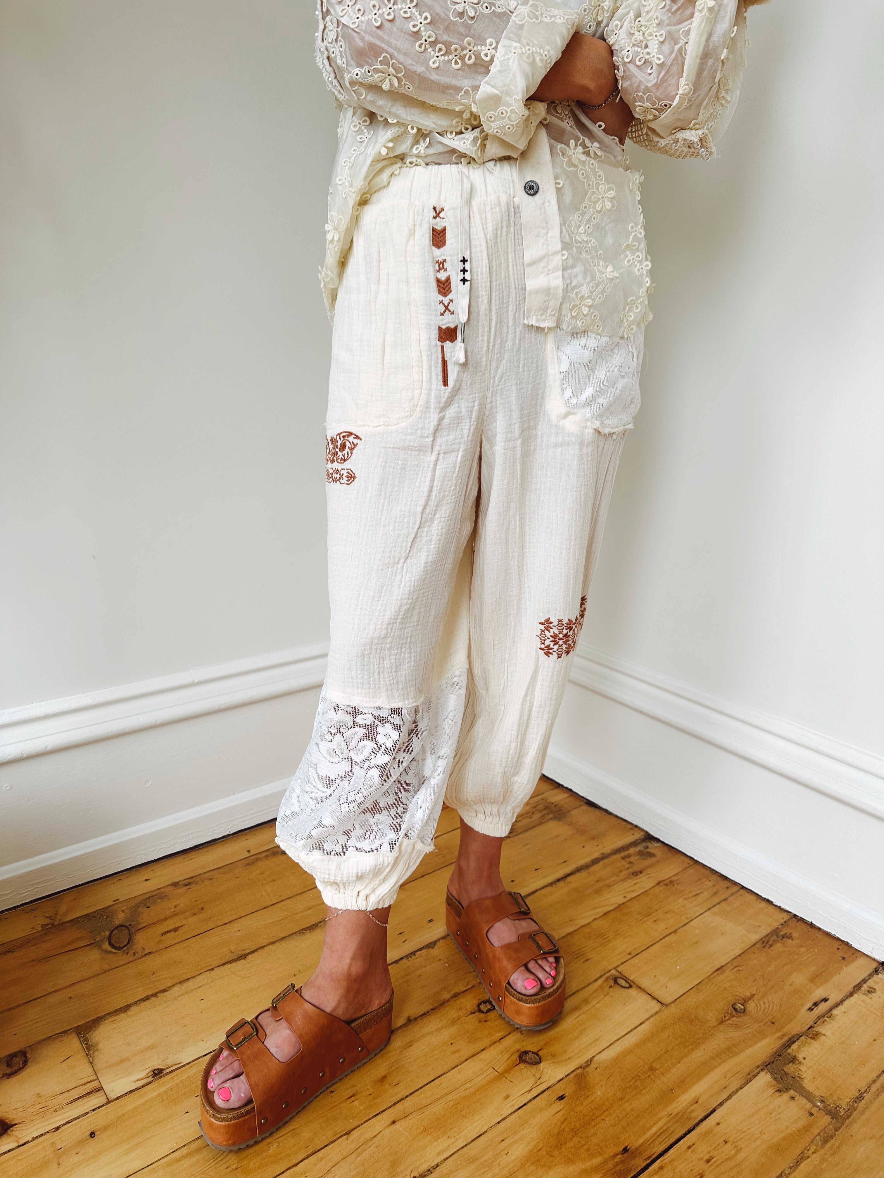 POL gauze joggers - so comfortable. Amazing quality! Relaxed fit (meant to be spacious but you could size down) the color combo is *chefs kiss*