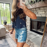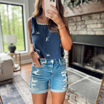 Navy Knotty Embroidered Linen Square Neck Tank! Relaxed / true fit!