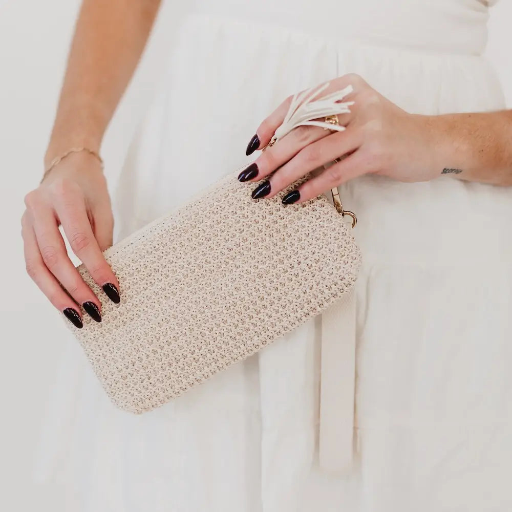 Noa Cream Raffia Clutch Card Wristlet