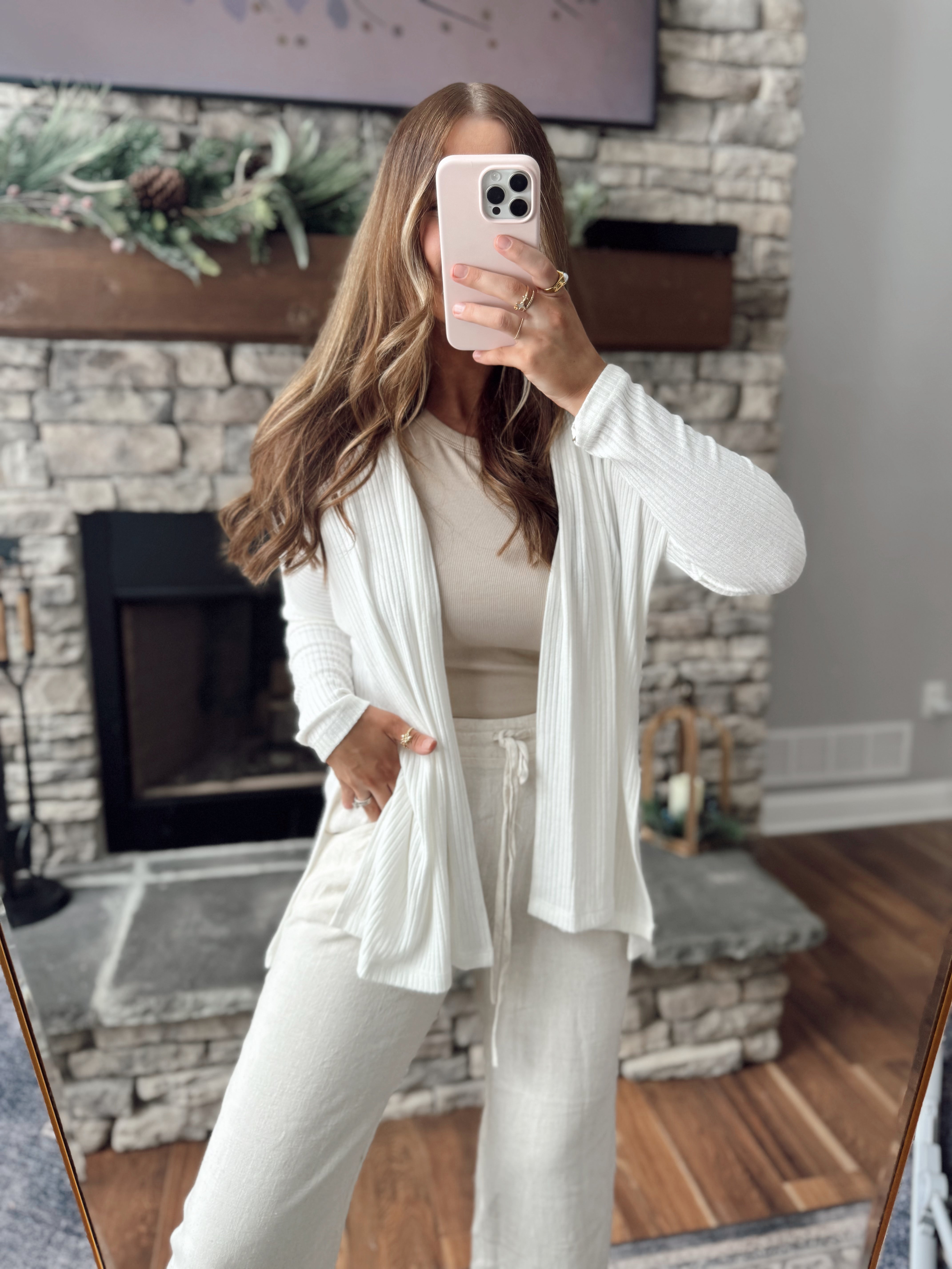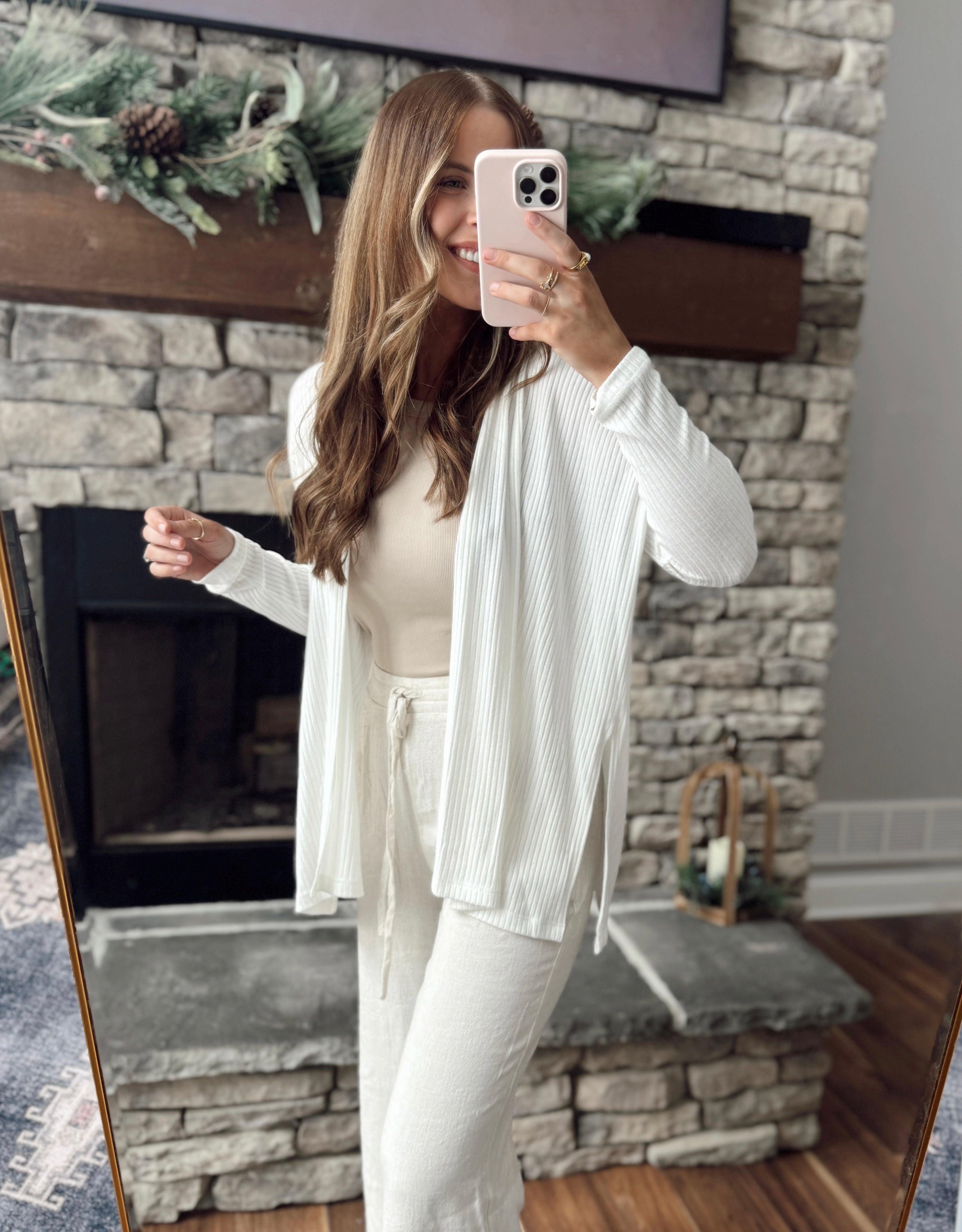 Oak Off White Ribbed Drop Shoulder Cardi with Side Slits