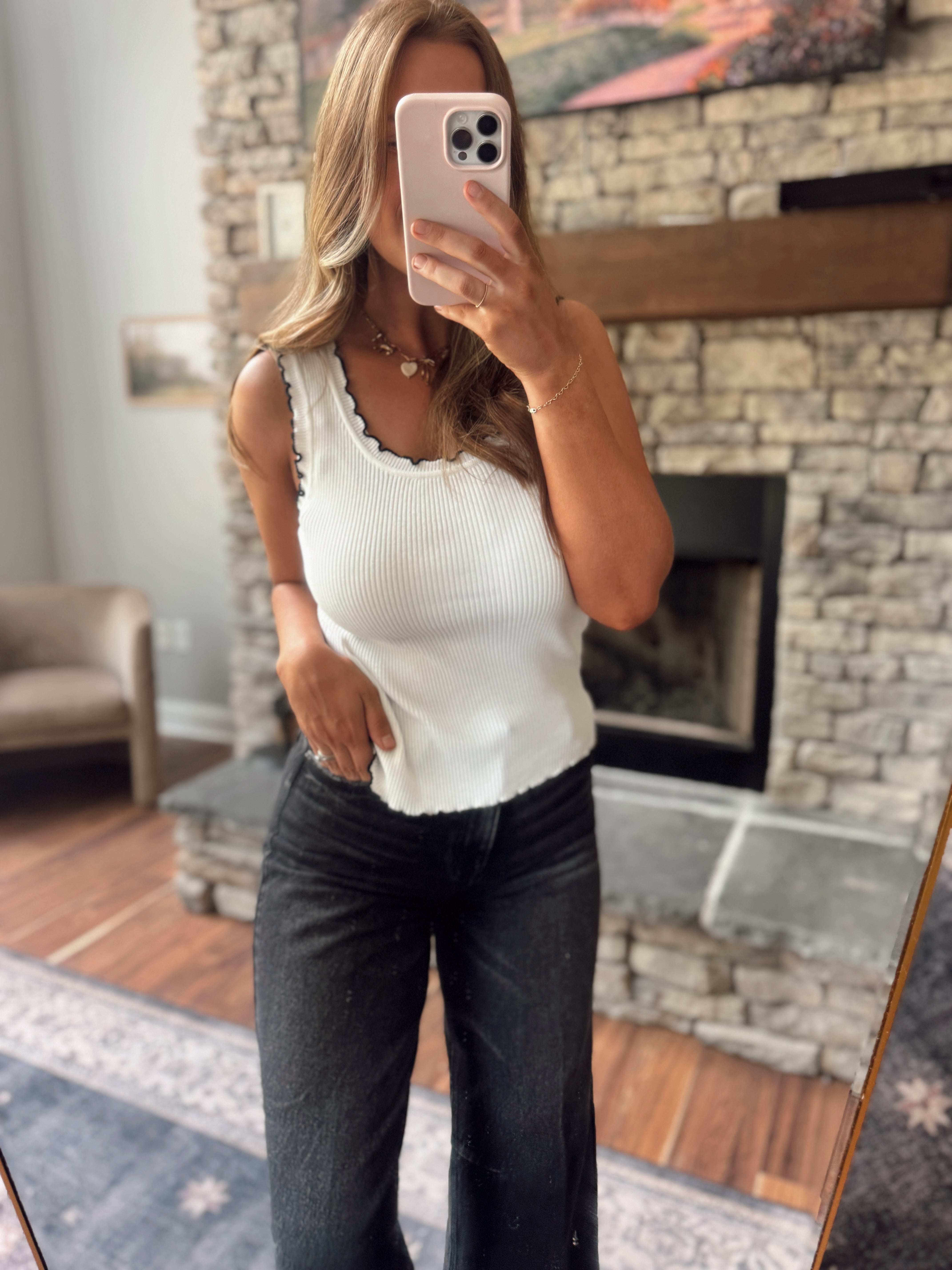 Off White Cabbage Hem Color Block Tank IN STORE