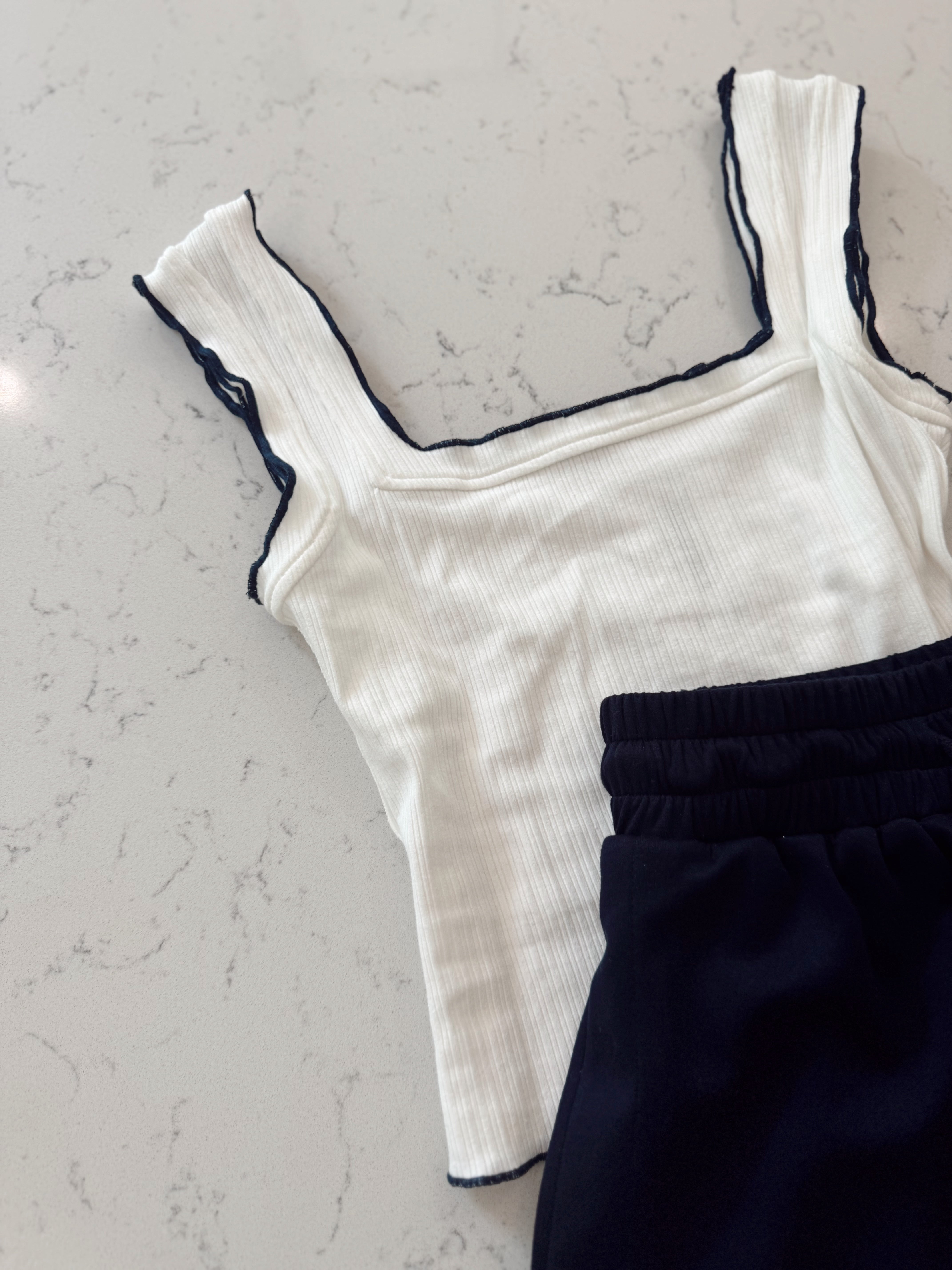 Off White Double Lettuce Edge Tank