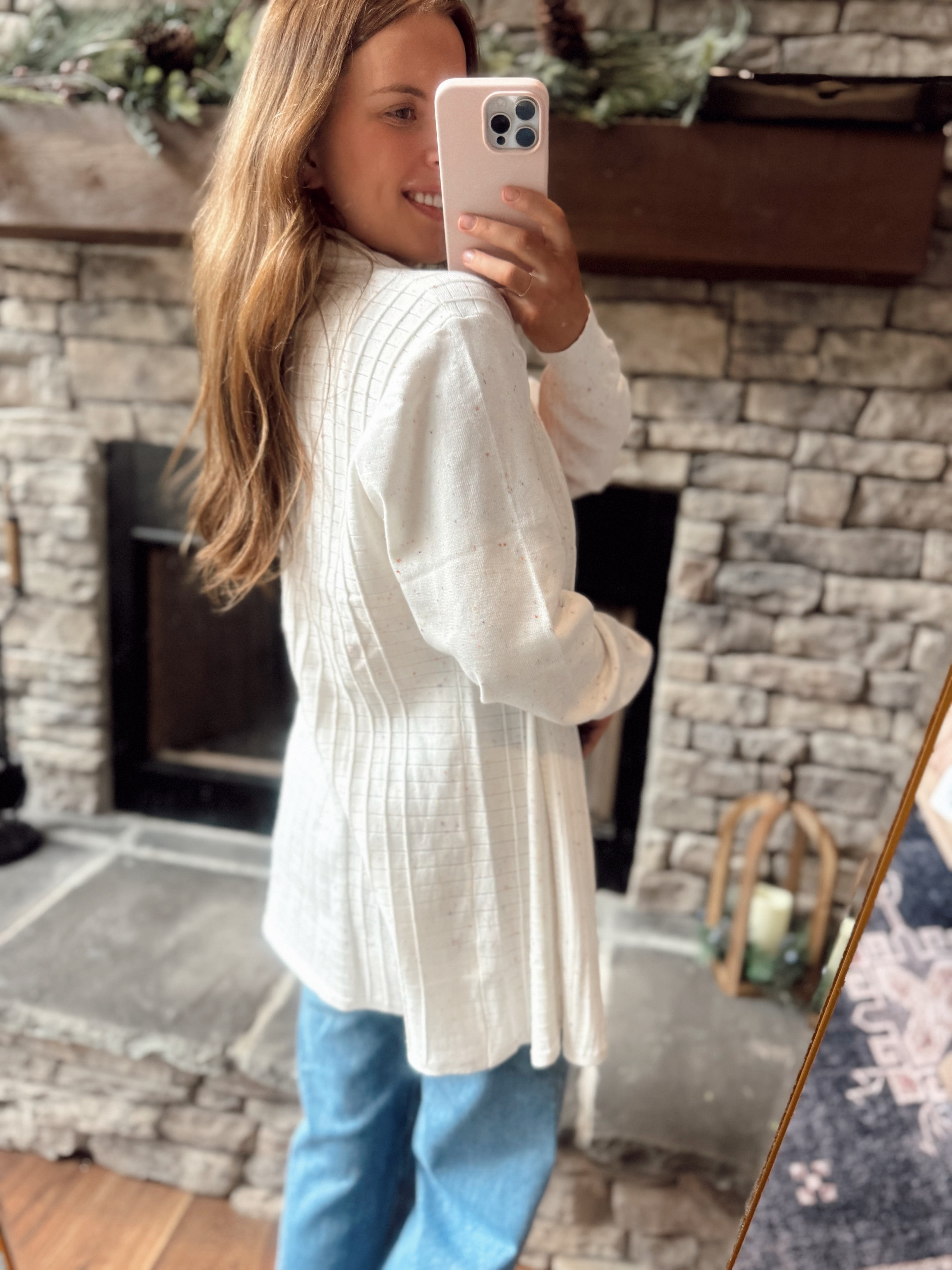 Off White Ribbed Rainbow Confetti Cardi