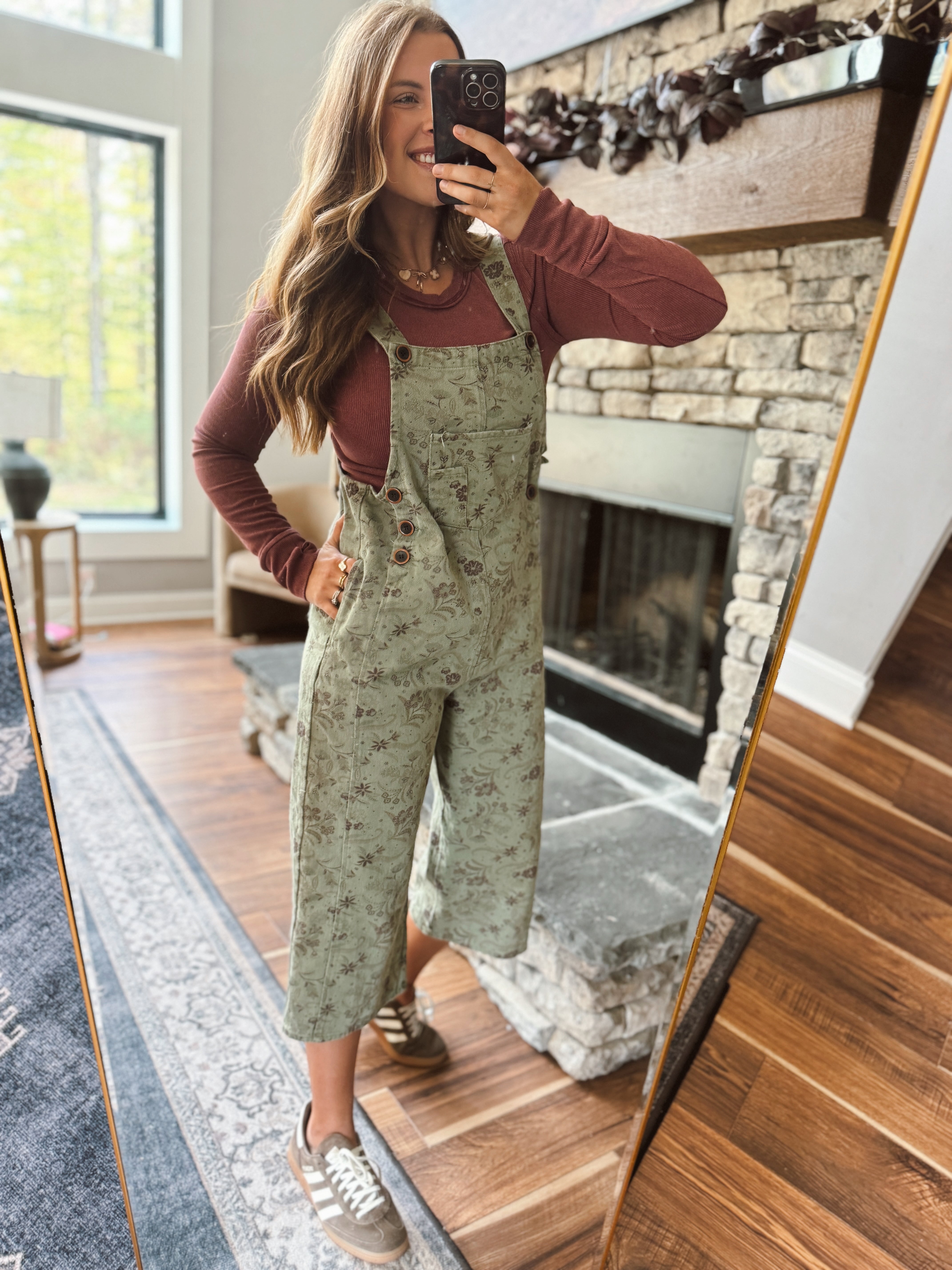 Playful, comfy, and so easy to wear 🌿 These floral cropped overalls are the perfect mix of laid-back charm and everyday style. Featuring adjustable straps, side button details, and a relaxed wide-leg fit, they’re made for layering with your favorite tees, long sleeves, or sweaters.