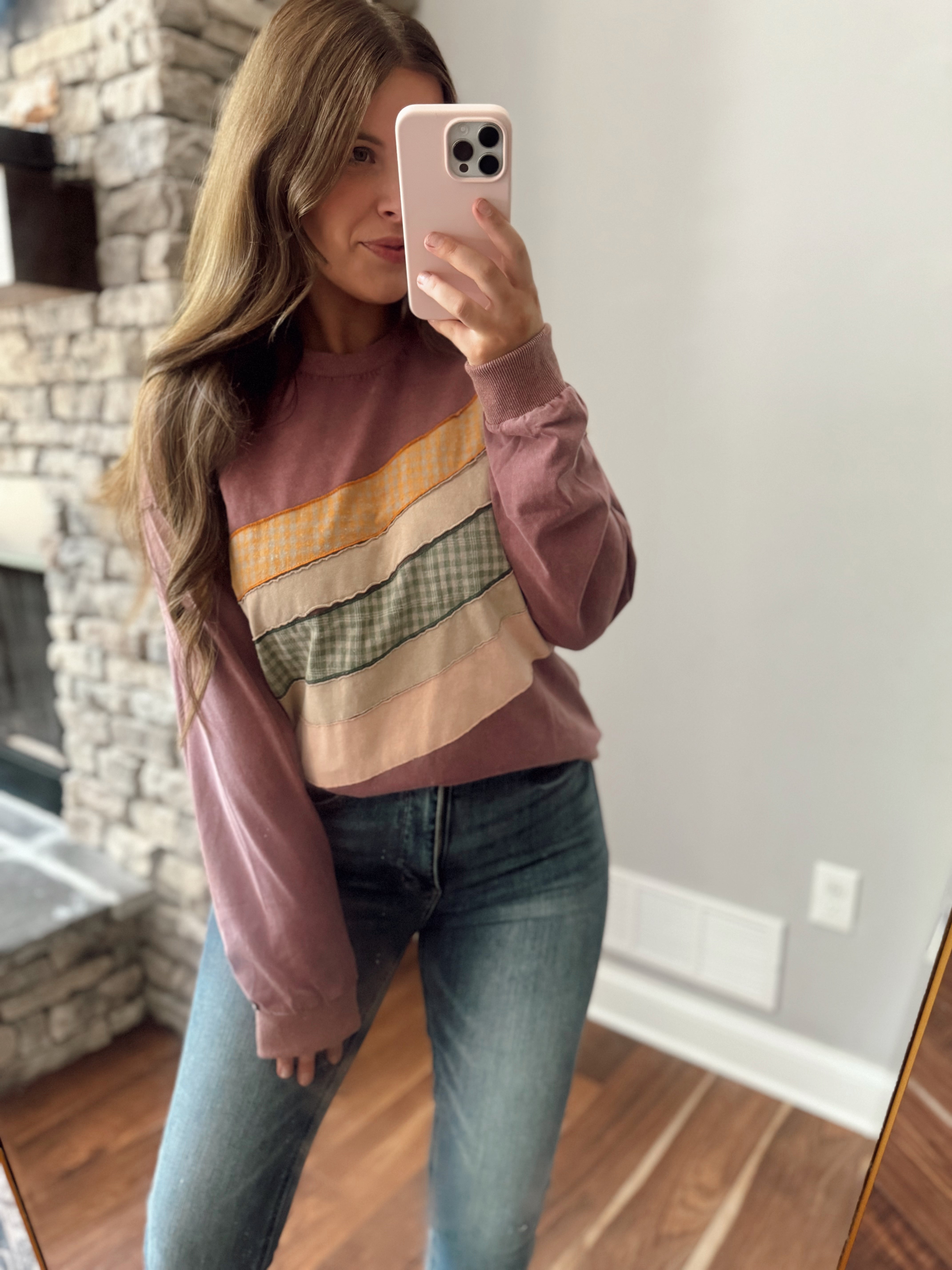 Love the plaid patches! And the color of this one! Relaxed fit - so dang cute