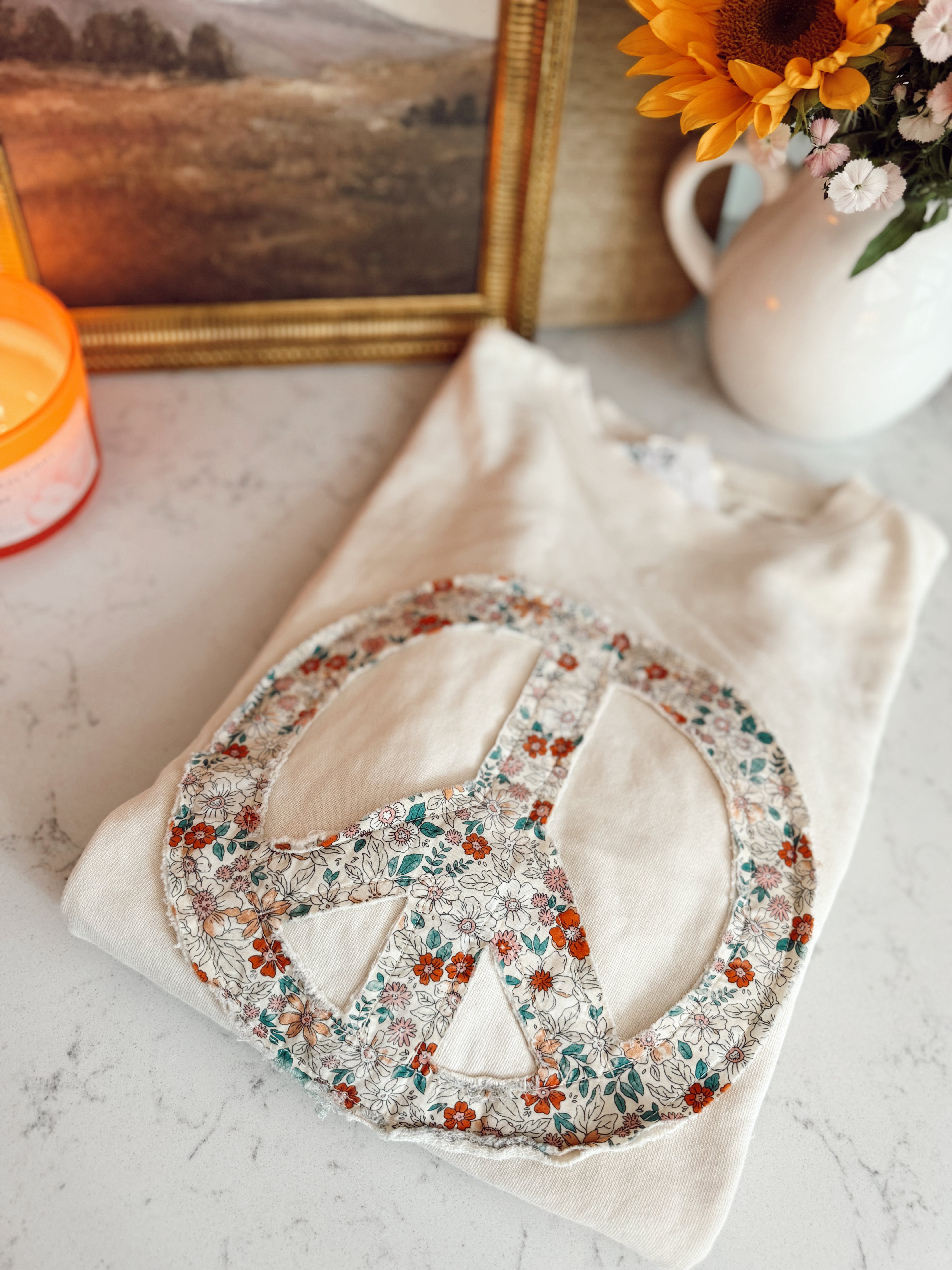 Peace Love and Flowers Beige Half Sleeve Pullover