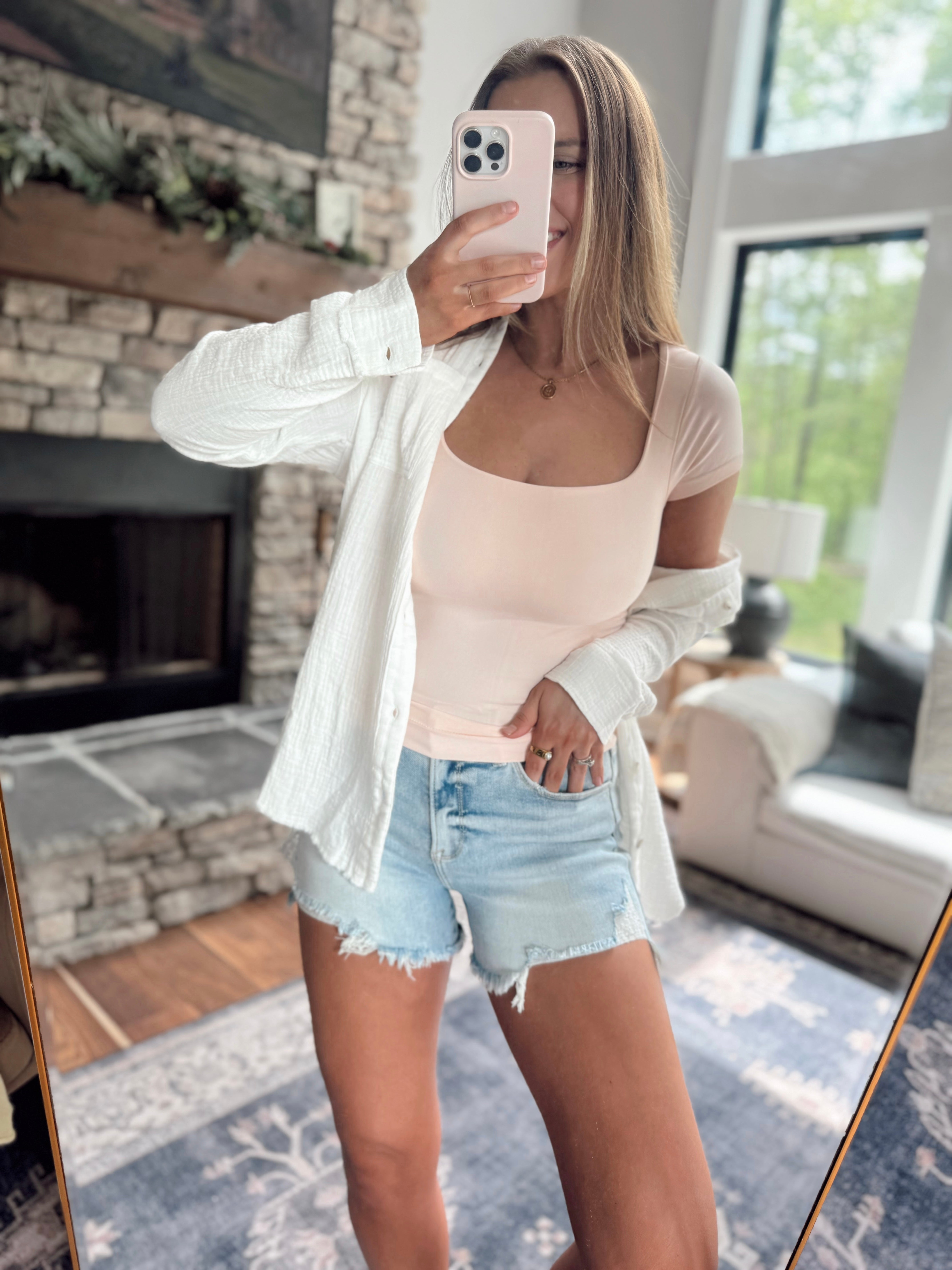 Neckline so good! These are SO stretchy! They also have lining for support! No pads but still.